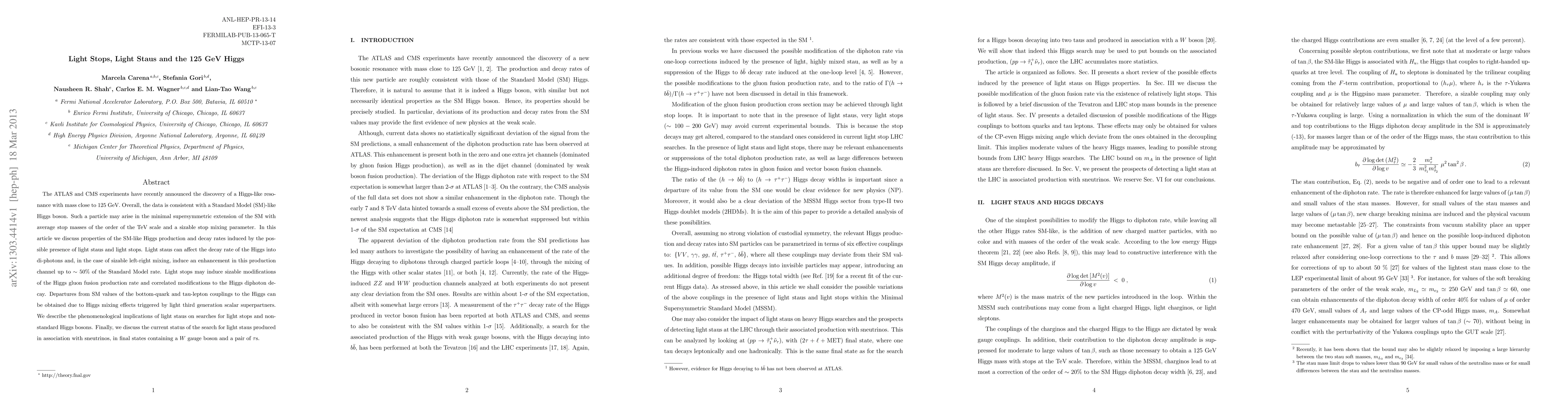 This paper explores the implications of a 125 GeV Higgs-like resonance consistent with the Standard Model, focusing on the effects of light staus and stops in supersymmetric extensions. It discusses how light staus can enhance Higgs decay into di-photons and how light stops can modify Higgs production and decay rates, with implications for searches of non-standard Higgs bosons and supersymmetric particles.
