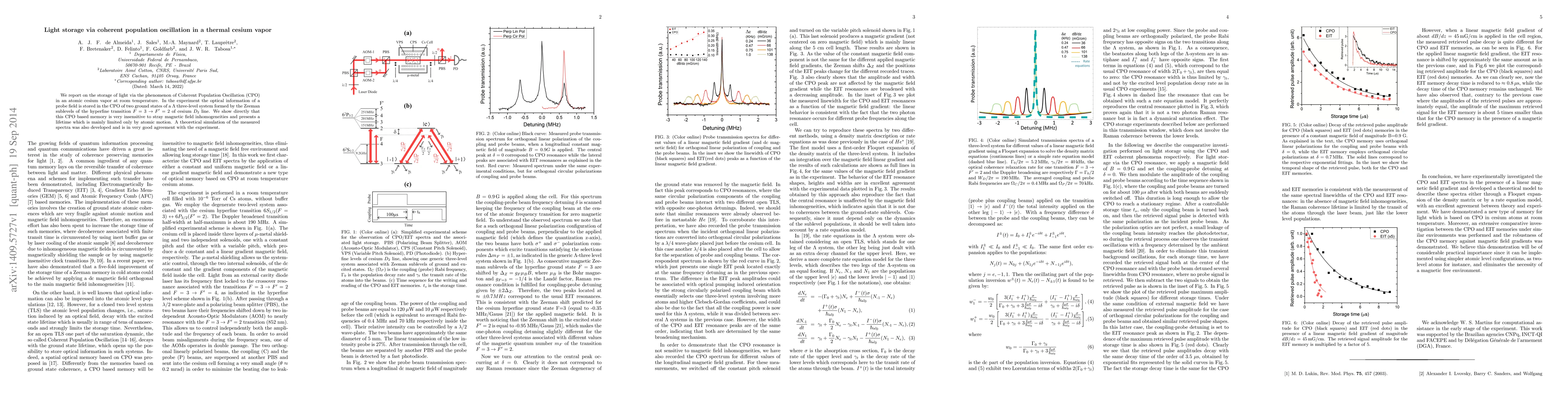 Demonstrates a new type of memory for light based on CPO in cesium atoms at room temperature, with potential applications in quantum information processing