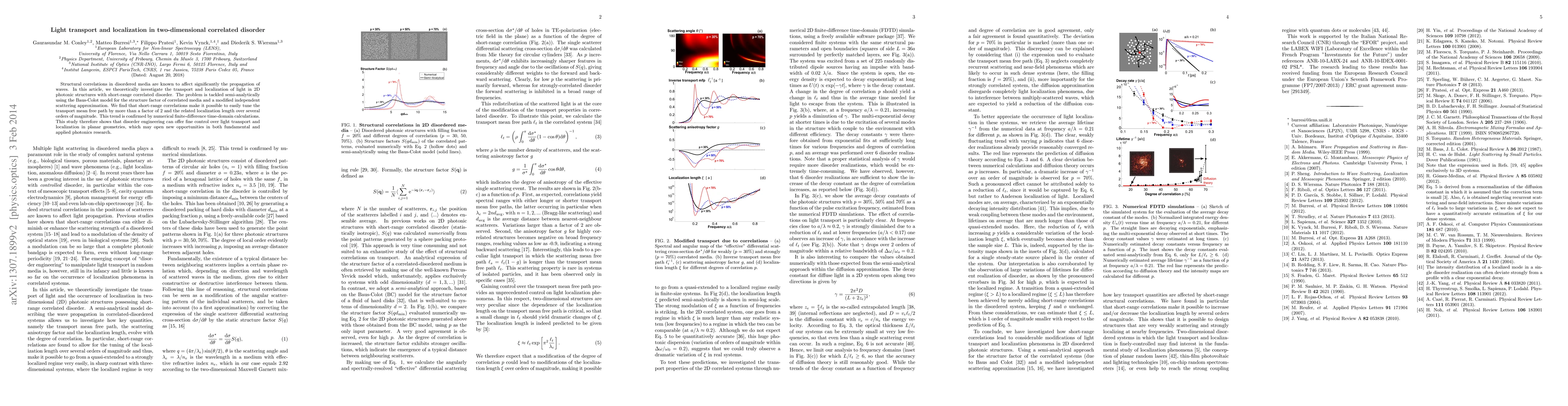 This paper explores how short-range correlations in two-dimensional disordered photonic structures affect light transport and localization, demonstrating significant tunability of the transport mean free path and localization length using theoretical and numerical methods. The findings suggest potential for advanced control in photonics applications through disorder engineering.