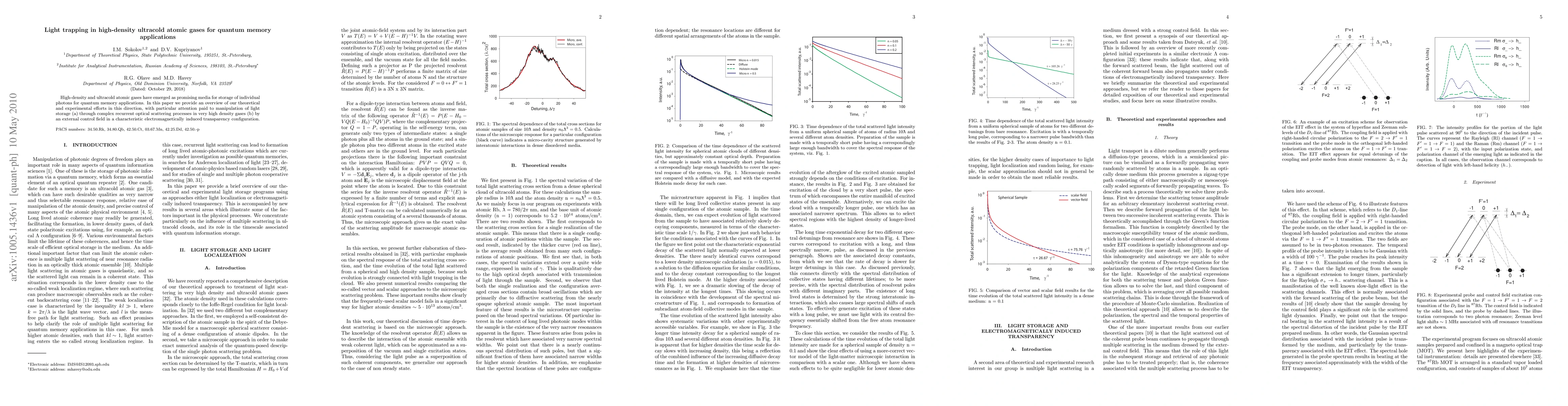 This paper reviews theoretical and experimental approaches to enhance light trapping in high-density ultracold atomic gases for quantum memory, focusing on complex recurrent optical scattering and electromagnetically induced transparency under external control fields.