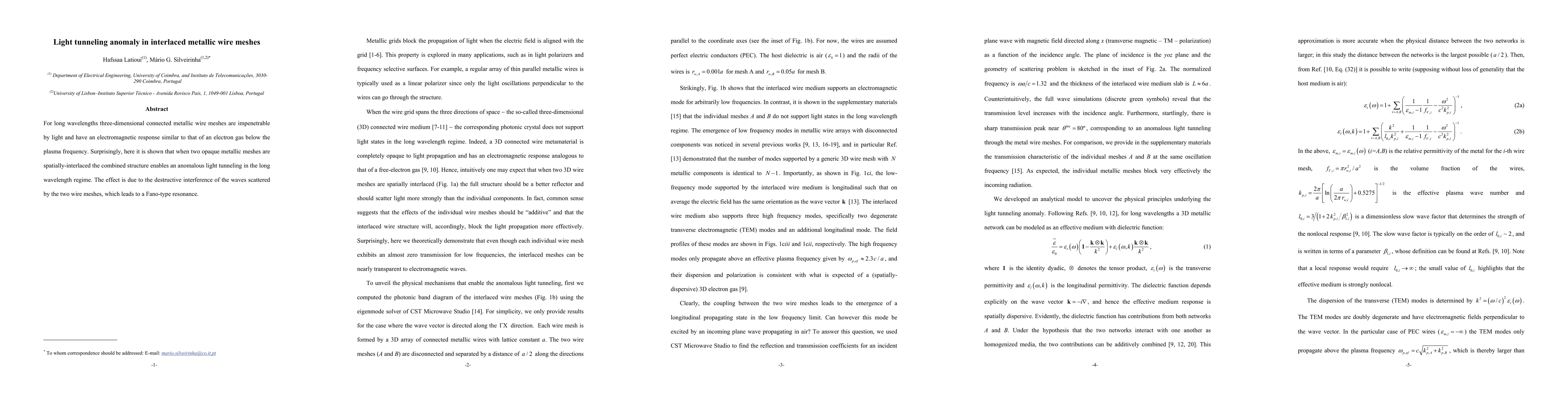 For long wavelengths three-dimensional connected metallic wire meshes are impenetrable by light and have an electromagnetic response similar to that of an electron gas below the plasma frequency. Surprisingly, here it is shown that when two opaque metallic meshes are spatially-interlaced the combined structure enables an anomalous light tunneling in the long wavelength regime. The effect is due to the destructive interference of the waves scattered by the two wire meshes, which leads to a Fano-type resonance.