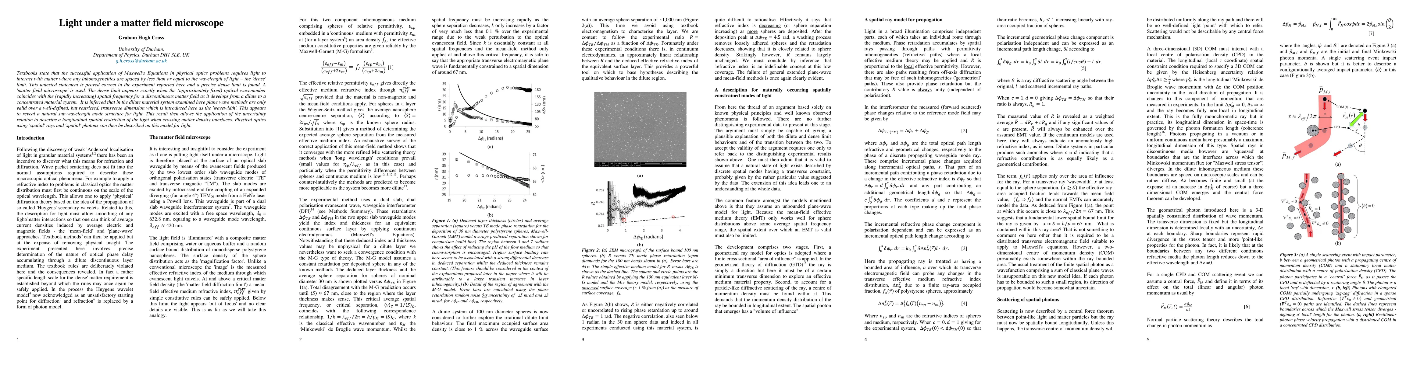 Textbooks state that the successful application of Maxwell's Equations in physical optics problems requires light to interact with matter where any inhomogeneities are spaced by less than or equal to the wavelength of light; the 'dense' limit. This untested statement is proved correct in the experiment reported here and a precise dense limit is found. A 'matter field microscope' is used. The dense limit appears exactly when the (approximately fixed) optical wavenumber coincides with the (rapidly increasing) spatial frequency for a discontinuous matter field as it develops from a dilute to a concentrated material system. It is inferred that in the dilute material system examined here plane wave methods are only valid over a well-defined, but restricted, transverse dimension which is introduced here as the 'wavewidth'. This appears to reveal a natural sub-wavelength mode structure for light. This result then allows the application of the uncertainty relation to describe a longitudinal spatial restriction of the light when crossing matter density interfaces. Physical optics using 'spatial' rays and 'spatial' photons can then be described on this model for light.