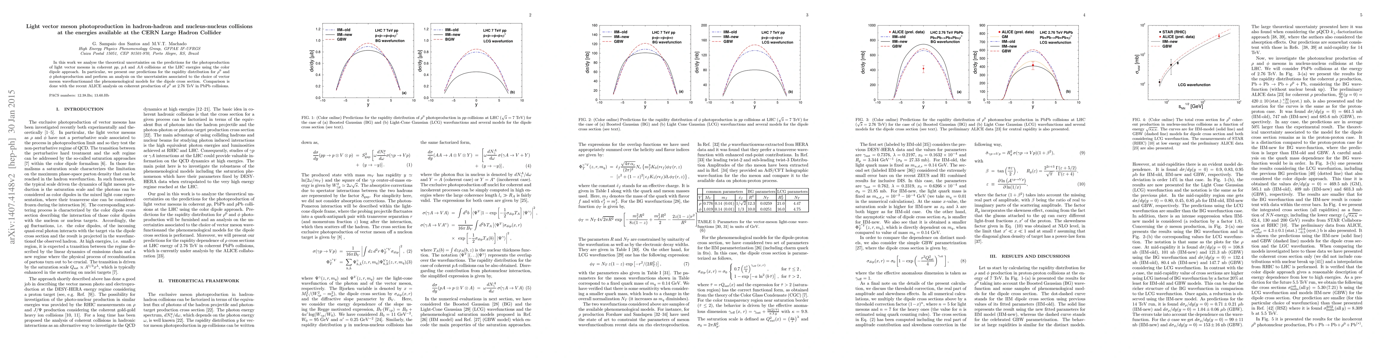 In this work we analyse the theoretical uncertainties on the predictions for the photoproduction of light vector mesons in coherent pp, pA and AA collisions at the LHC energies using the color dipole approach. In particular, we present our predictions for the rapidity distribution for rh0 and phi photoproduction and perform an analysis on the uncertainties associated to the choice of vector meson wavefunctionand the phenomenological models for the dipole cross section. Comparison is done with the recent ALICE analysis on coherent production of rho at 2.76 TeV in PbPb collisions.