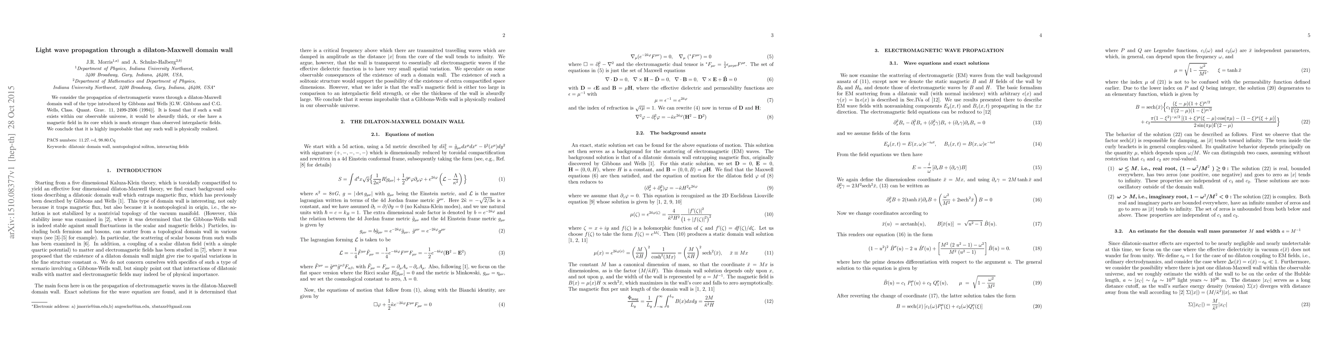 We consider the propagation of electromagnetic waves through a dilaton-Maxwell domain wall of the type introduced by Gibbons and Wells [G.W. Gibbons and C.G. Wells, Class. Quant. Grav. 11, 2499-2506 (1994)]. It is found that if such a wall exists within our observable universe, it would be absurdly thick, or else have a magnetic field in its core which is much stronger than observed intergalactic fields. We conclude that it is highly improbable that any such wall is physically realized.