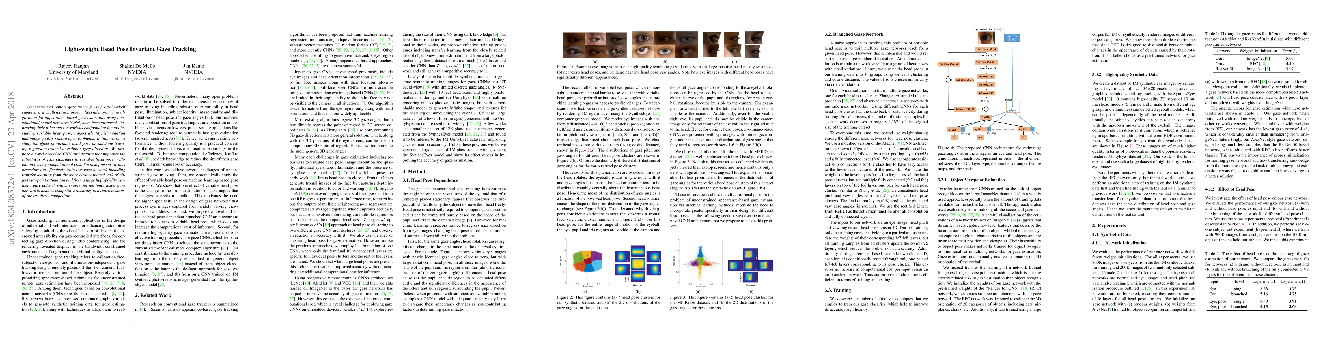 This paper proposes a lightweight, branched CNN architecture to enhance the robustness of gaze tracking under varying head poses, utilizing transfer learning from related tasks and synthetic data. The resulting network achieves competitive accuracy while being ten times faster than current state-of-the-art methods.