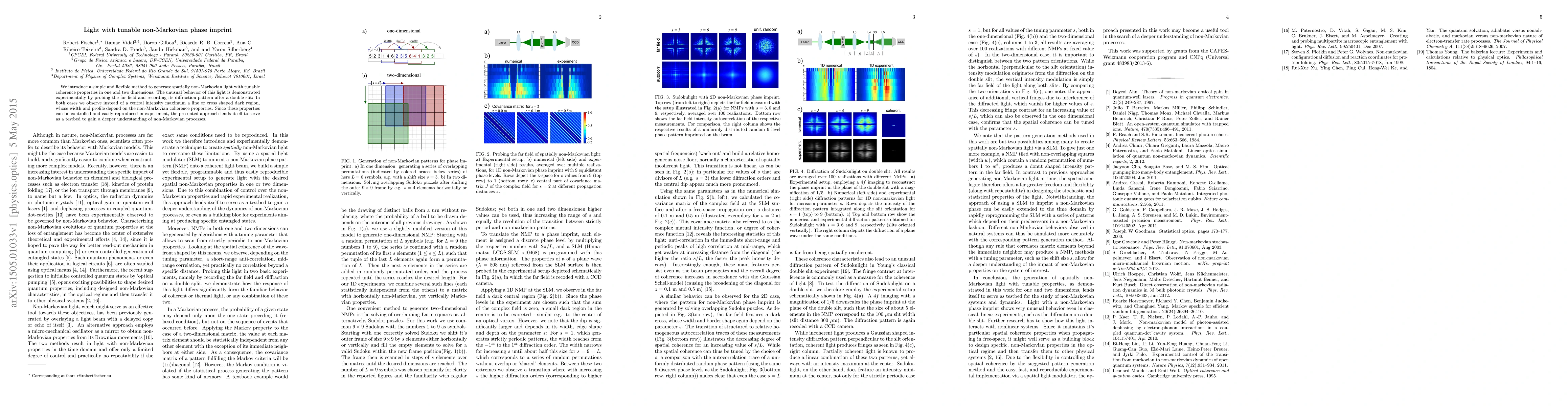 We introduce a simple and flexible method to generate spatially non-Markovian light with tunable coherence properties in one and two dimensions. The unusual behavior of this light is demonstrated experimentally by probing the far field and recording its diffraction pattern after a double slit: In both cases we observe instead of a central intensity maximum a line or cross shaped dark region, whose width and profile depend on the non-Markovian coherence properties. Since these properties can be controlled and easily reproduced in experiment, the presented approach lends itself to serve as a testbed to gain a deeper understanding of non-Markovian processes.