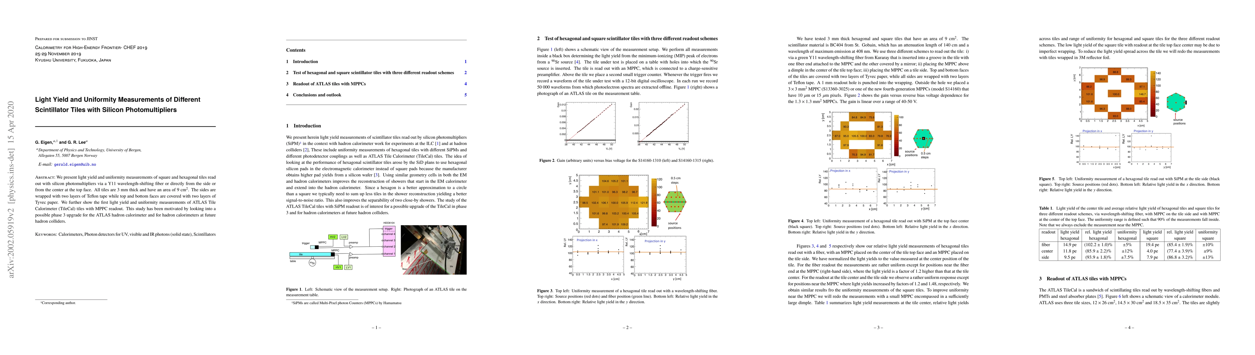 The research used a measurement setup with silicon photomultipliers (SiPMs) to measure light yield and uniformity of different scintillator tiles.