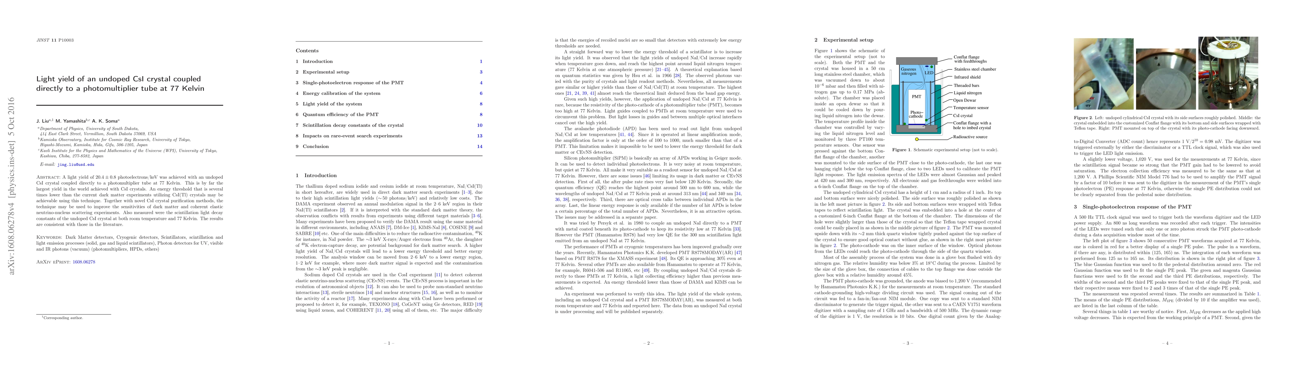 A light yield of 20.4 $\pm$ 0.8 photoelectrons/keV was achieved with an undoped CsI crystal coupled directly to a photomultiplier tube at 77 Kelvin. This is by far the largest yield in the world achieved with CsI crystals. An energy threshold that is several times lower than the current dark matter experiments utilizing CsI(Tl) crystals may be achievable using this technique. Together with novel CsI crystal purification methods, the technique may be used to improve the sensitivities of dark matter and coherent elastic neutrino-nucleus scattering experiments. Also measured were the scintillation light decay constants of the undoped CsI crystal at both room temperature and 77 Kelvin. The results are consistent with those in the literature.