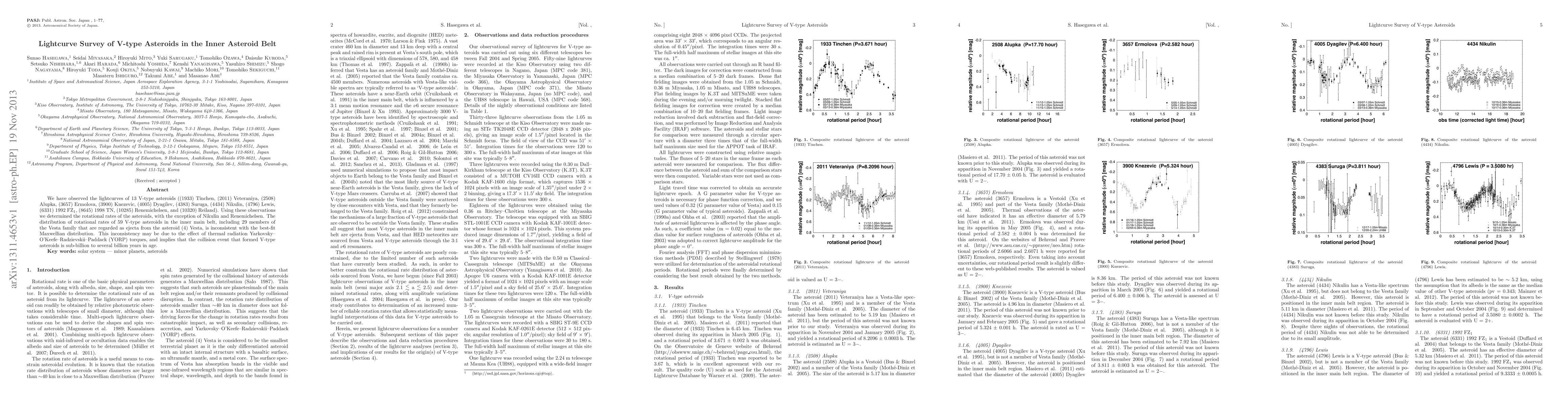 This study observed the lightcurves of 13 V-type asteroids to determine their rotational rates, finding an inconsistency in the distribution of these rates compared to a Maxwellian distribution, likely influenced by YORP effects, suggesting the formation event of V-type asteroids occurred billions of years ago.