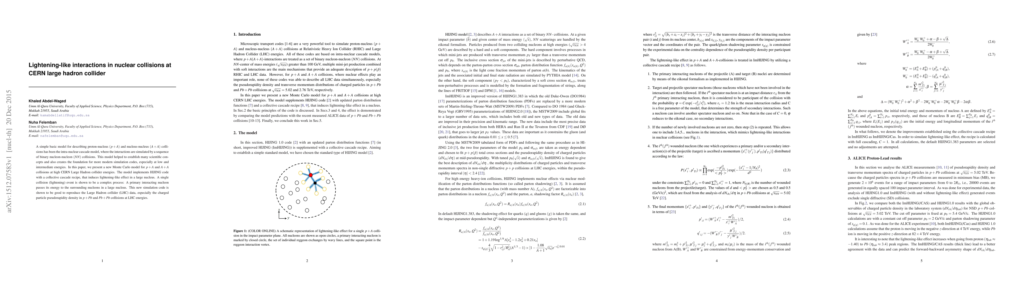 A simple basic model for describing proton-nucleus (pA) and nucleus-nucleus (AA) collisions has been the intra-nuclear cascade model, where the interactions are simulated by a sequence of binary nucleon-nucleon (NN) collisions. This model helped to establish many scientific concepts and also creates the foundation for more modern simulation codes, especially at low and intermediate energies. In this paper, we present a new Monte Carlo model for pA and AA collisions at high CERN Large Hadron collider energies. The model implements HIJING code with a collective cascade recipe, that induces striking light-like effect in a large nucleus. A single collision (lightening) event is shown to be a complex process:A primary interacting nucleon passes its energy to the surrounding nucleons in a large nucleus. This new simulation code is shown to be good to reproduce the Large Hadron collider (LHC) data, especially the charged particle pseudorapidity density in p+Pb and Pb+Pb collisions at LHC energies.