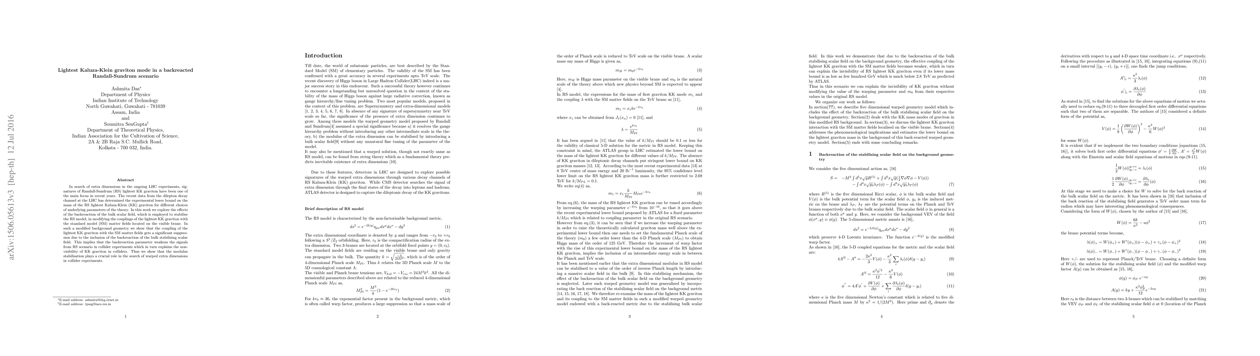 In search of extra dimensions in the ongoing LHC experiments, signatures of Randall-Sundrum (RS) lightest KK graviton have been one of the main focus in recent years. The recent data from the dilepton decay channel at the LHC has determined the experimental lower bound on the mass of the RS lightest Kaluza-Klein (KK) graviton for different choices of underlying parameters of the theory. In this work we explore the effects of the backreaction of the bulk scalar field, which is employed to stabilise the RS model, in modifying the couplings of the lightest KK graviton with the standard model (SM) matter fields located on the visible brane. In such a modified background geometry we show that the coupling of the lightest KK graviton with the SM matter fields gets a significant suppression due to the inclusion of the backreaction of the bulk stabilising scalar field. This implies that the backreaction parameter weakens the signals from RS scenario in collider experiments which in turn explains the non-visibility of KK graviton in colliders. Thus we show that the modulus stabilisation plays a crucial role in the search of warped extra dimensions in collider experiments.