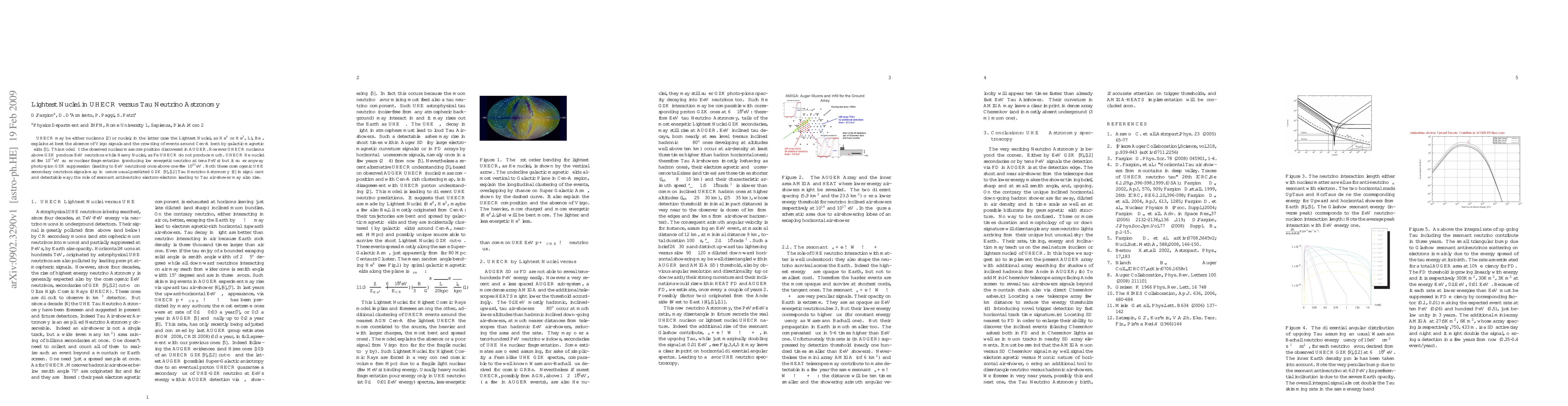 UHECR may be either nucleons or nuclei; in the latter case the Lightest Nuclei, as He, Li, Be, explains at best the absence of Virgo signals and the crowding of events around Cen-A bent by galactic magnetic fields. This model fit the observed nuclear mass composition discovered in AUGER. However UHECR nucleons above GZK produce EeV neutrinos while Heavy Nuclei, as Fe UHECR do not produce much. UHECR He nuclei at few tens EeV suffer nuclear fragmentation (producing low energetic neutrino at tens PeVs) but it suffer anyway photo-pion GZK suppression (leading to EeV neutrinos) once above one-few 10^{20} eV. Both these cosmogenic UHE secondary neutrinos signals may influence usual predicted GZK Tau Neutrino Astronomy in significant and detectable way; the role of resonant antineutrino electron-electron leading to Tau air-shower may also rise.