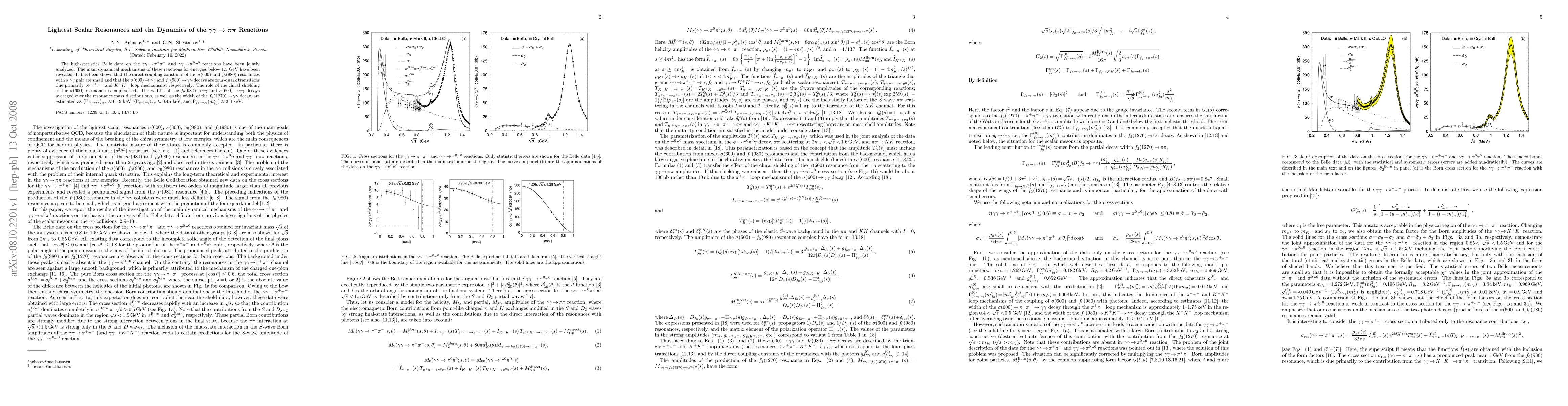 The high-statistics Belle data on the \gamma\gamma\to\pi^+\pi^- and \gamma\gamma\to\pi^0\pi^0 reactions have been jointly analyzed. The main dynamical mechanisms of these reactions for energies below 1.5 GeV have been revealed. It has been shown that the direct coupling constants of the \sigma(600) and f_0(980) resonances with a \gamma\gamma pair are small and that the \sigma(600)\to\gamma\gamma and f_0(980)\to\gamma\gamma decays are four-quark transitions due primarily to \pi^+\pi^- and K^+K^- loop mechanisms, respectively. The role of the chiral shielding of the \sigma(600) resonance is emphasized. The widths of the f_0(980)\to\gamma\gamma and \sigma(600)\to\gamma\gamma decays averaged over the resonance mass distributions, as well as the width of the f_2(1270)\to\gamma\gamma decay, are estimated as (\Gamma_{f_0\to\gamma\gamma})_{\pi\pi}\approx 0.19 keV, (\Gamma_{\sigma \to\gamma\gamma})_{\pi\pi}\approx 0.45 keV, and \Gamma_{f_2\to\gamma\gamma}(m^2_{f_2})\approx 3.8$ keV.