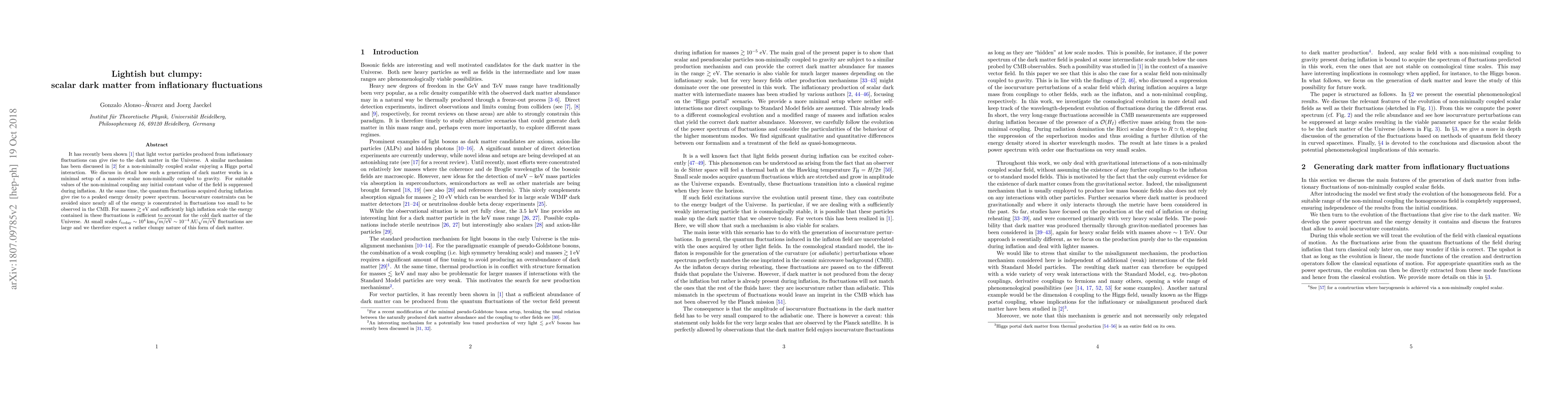 This paper explores how scalar dark matter can arise from inflationary fluctuations through a massive scalar non-minimally coupled to gravity, with the energy density concentrated in small fluctuations that avoid isocurvature constraints. For masses above eV and high inflation scales, this mechanism can account for the Universe's cold dark matter, which exhibits a clumpy nature on small scales.