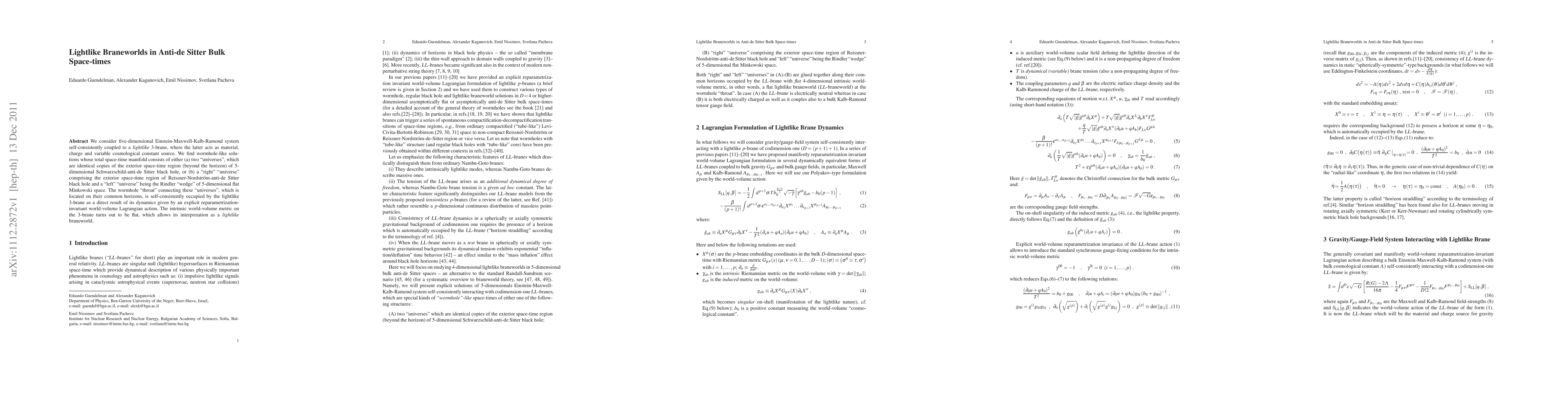 The paper presents a detailed analysis of a five-dimensional Einstein-Maxwell-Kalb-Ramond system coupled to a lightlike 3-brane, deriving explicit wormhole-like solutions in anti-de Sitter bulk space-times.