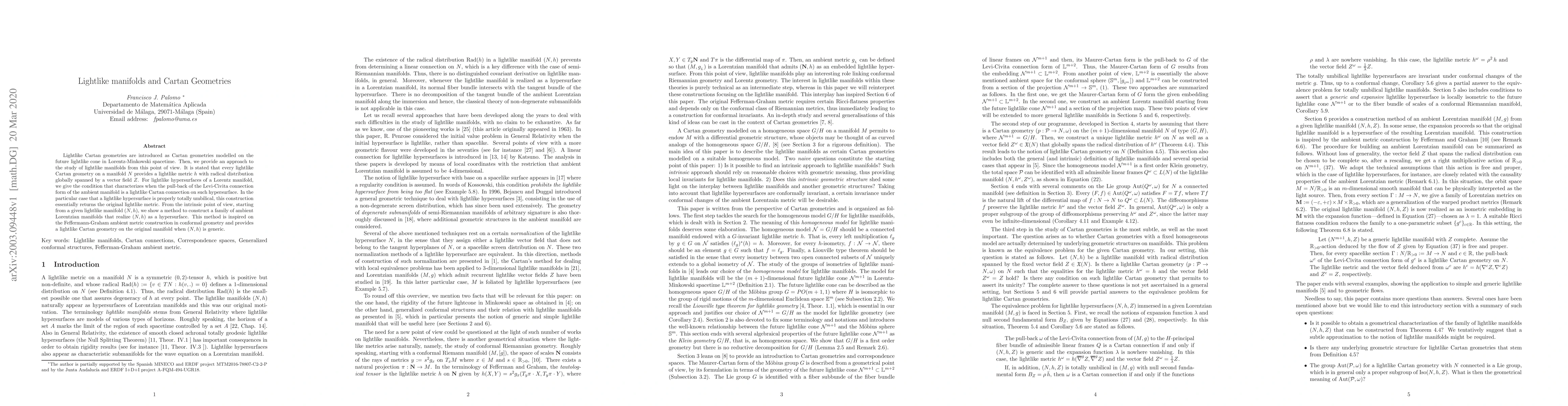 This paper introduces lightlike Cartan geometries modeled on the future lightlike cone in Lorentz-Minkowski spacetime and explores their application to lightlike manifolds. It provides a method to construct ambient Lorentzian manifolds from given lightlike hypersurfaces, inspired by the Feffermann-Graham construction in conformal geometry.
