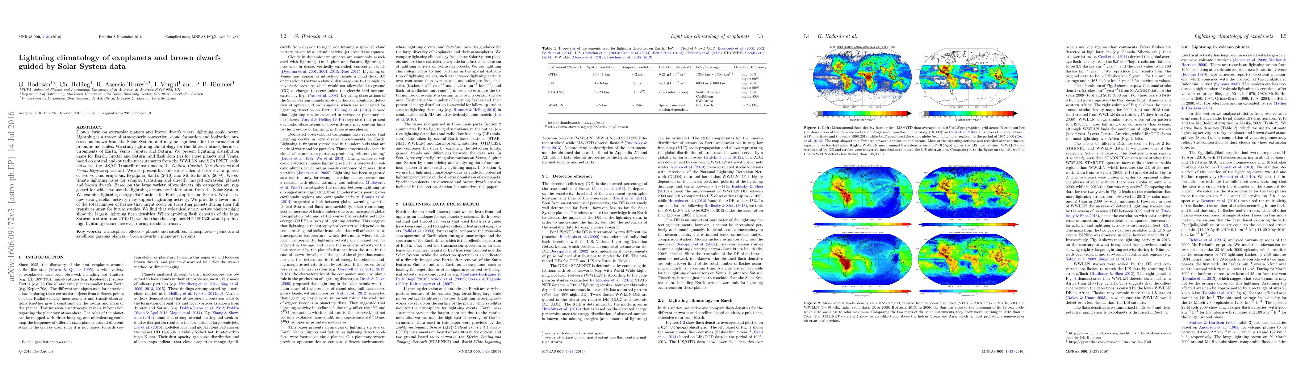 This research investigates the lightning climatology of exoplanets and brown dwarfs, drawing parallels from the Solar System's atmospheric environments. It estimates lightning rates for various exoplanets and suggests six categories based on lightning occurrence, finding that highly active volcanic planets may exhibit the highest lightning flash densities.