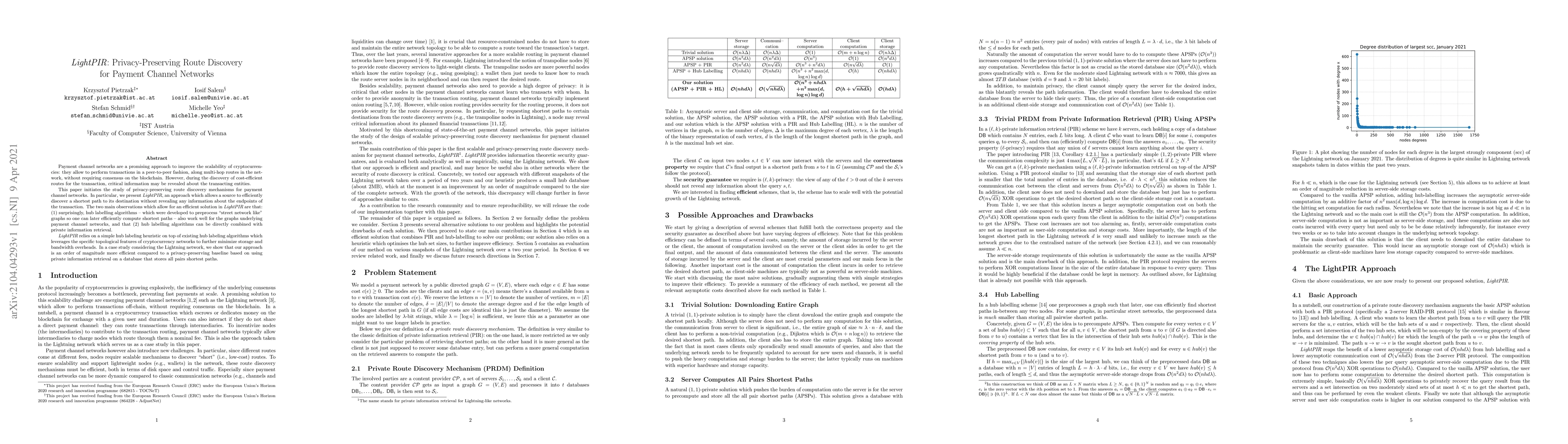This paper introduces LightPIR, a privacy-preserving route discovery mechanism for payment channel networks that ensures transaction endpoints remain undisclosed. It leverages hub labeling algorithms and private information retrieval to efficiently find the shortest path without revealing critical information.