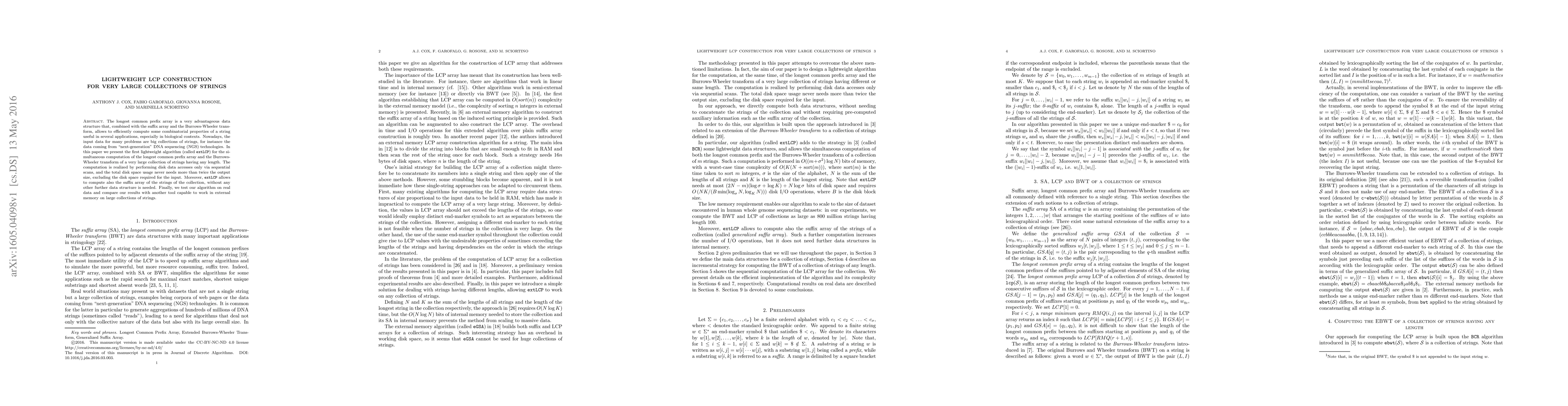 The proposed algorithm provides a lightweight and efficient solution for computing LCP and BWT arrays in external memory.