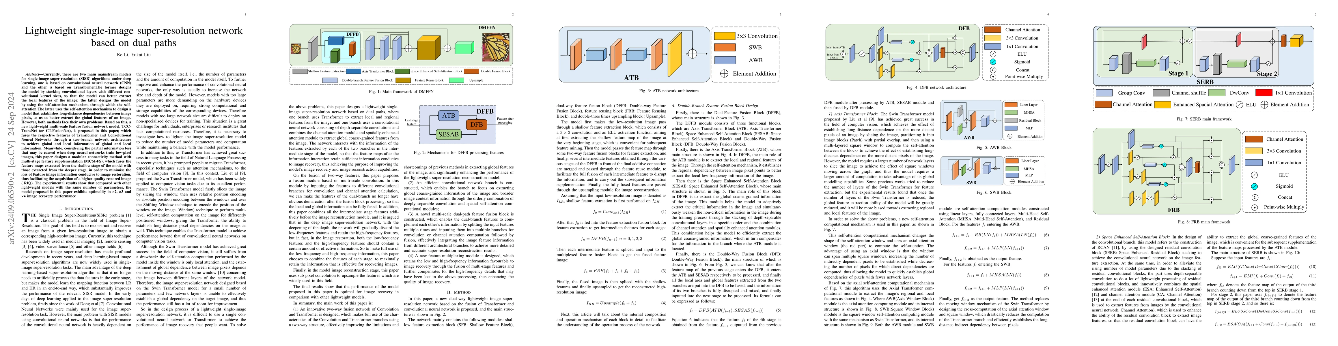 This paper introduces a lightweight multiscale feature fusion super-resolution network combining convolutional neural networks and Transformer models. It employs a two-branch architecture to integrate local and global features and uses a modular connection method for multi-stage feature supplementation, achieving superior image recovery performance compared to other lightweight models.