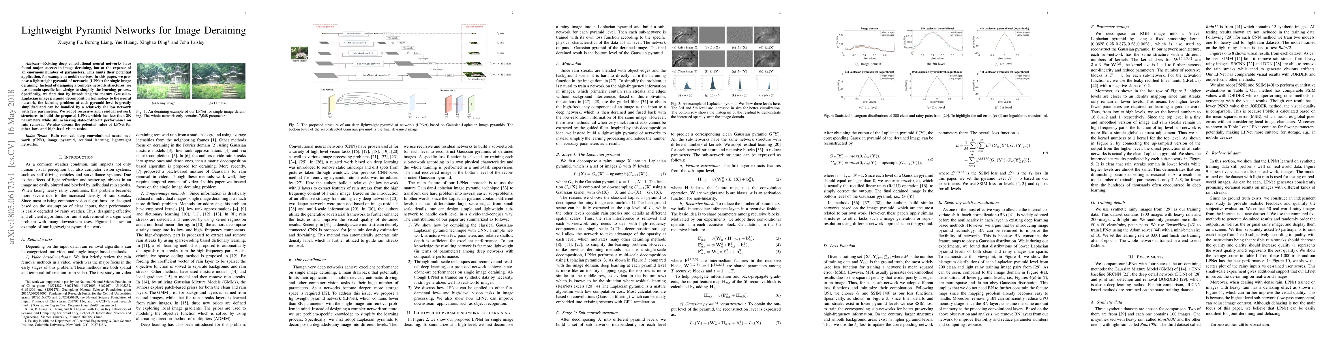 This paper proposes a lightweight pyramid network (LPNet) for image deraining that utilizes Gaussian-Laplacian pyramid decomposition to simplify the learning process, resulting in a network with fewer than 8K parameters while achieving state-of-the-art performance. The recursive and residual network structures enhance its efficiency and effectiveness.