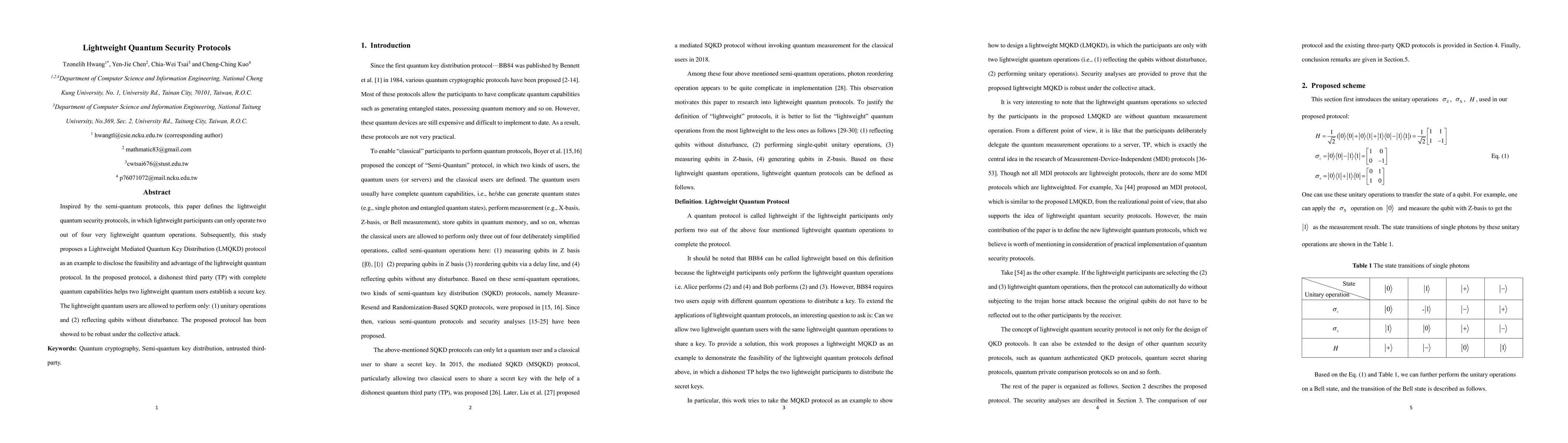 This paper introduces lightweight quantum security protocols where participants can only execute two specific quantum operations. It proposes a Lightweight Mediated Quantum Key Distribution (LMQKD) protocol, demonstrating its feasibility and robustness against collective attacks, with a dishonest third party aiding secure key establishment.