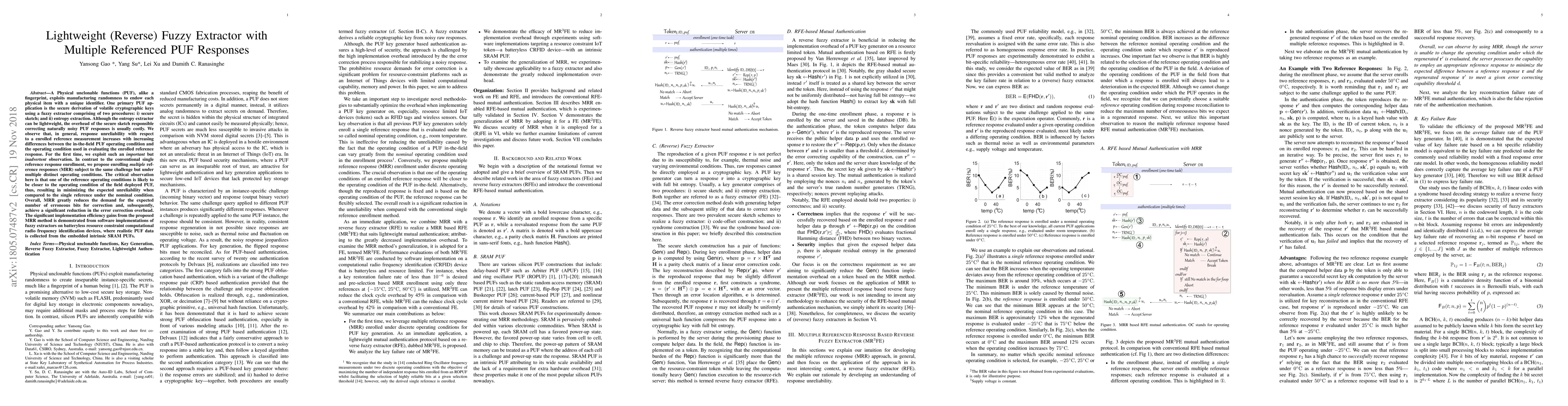This paper proposes a lightweight reverse fuzzy extractor for physical unclonable functions (PUFs) using multiple referenced PUF responses. It demonstrates that enrolling multiple reference responses under different operating conditions reduces unreliability and error correction overhead compared to single reference enrollment, leading to significant efficiency gains in resource-constrained devices.