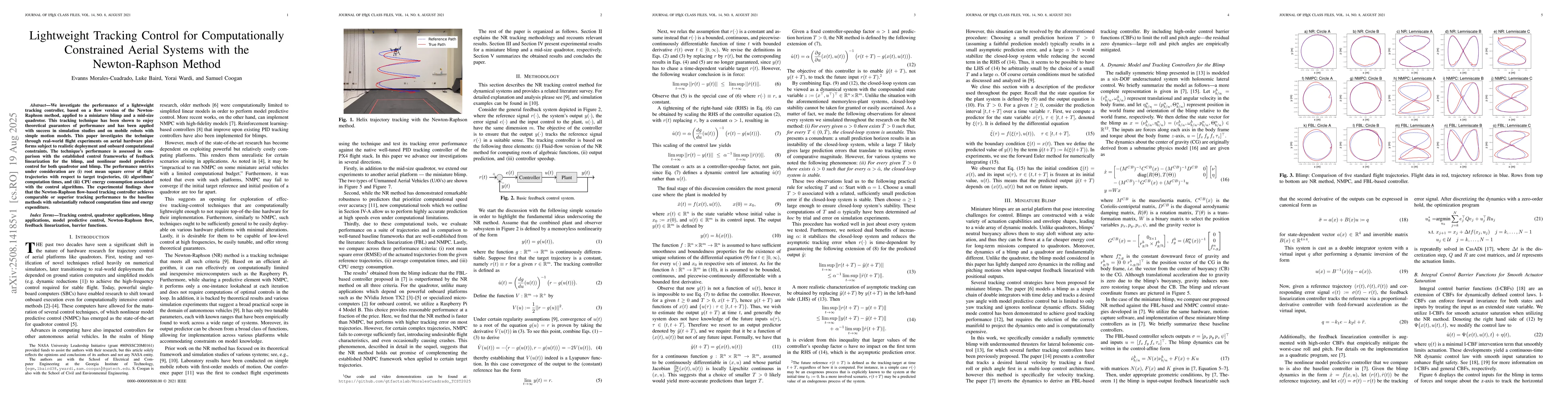 This paper explores a lightweight tracking controller, based on the Newton-Raphson method, on a miniature blimp and a mid-size quadrotor. Results indicate this method matches or surpasses existing control techniques in tracking performance, while significantly reducing computation time and energy use.
