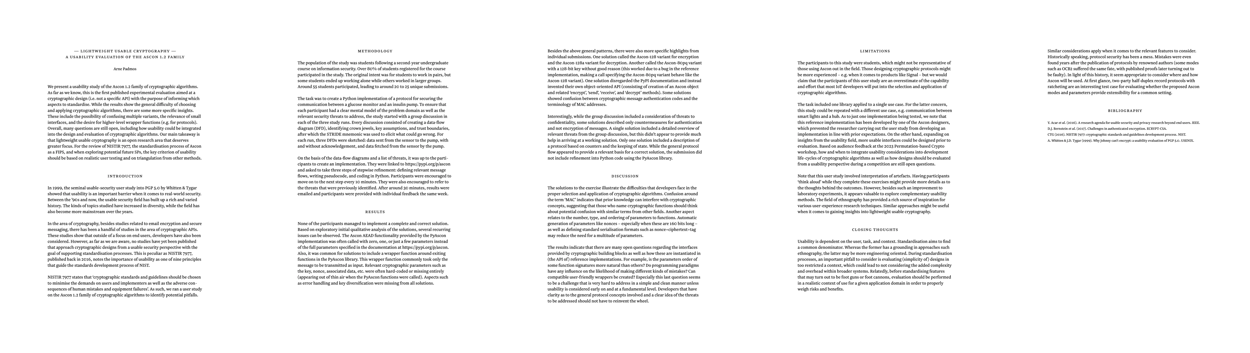We present a usability study of the Ascon 1.2 family of cryptographic algorithms. As far as we know, this is the first published experimental evaluation aimed at a cryptographic design (i.e. not a specific API) with the purpose of informing which aspects to standardise. While the results show the general difficulty of choosing and applying cryptographic algorithms, there are some more specific insights. These include the possibility of confusing multiple variants, the relevance of small interfaces, and the desire for higher-level wrapper functions (e.g. for protocols). Overall, many questions are still open, including how usability could be integrated into the design and evaluation of cryptographic algorithms. Our main takeaway is that lightweight usable cryptography is an open research area that deserves greater focus. For the review of NISTIR 7977, the standardisation process of Ascon as a FIPS, and when exploring potential future SPs, the key criterion of usability should be based on realistic user testing and on triangulation from other methods.