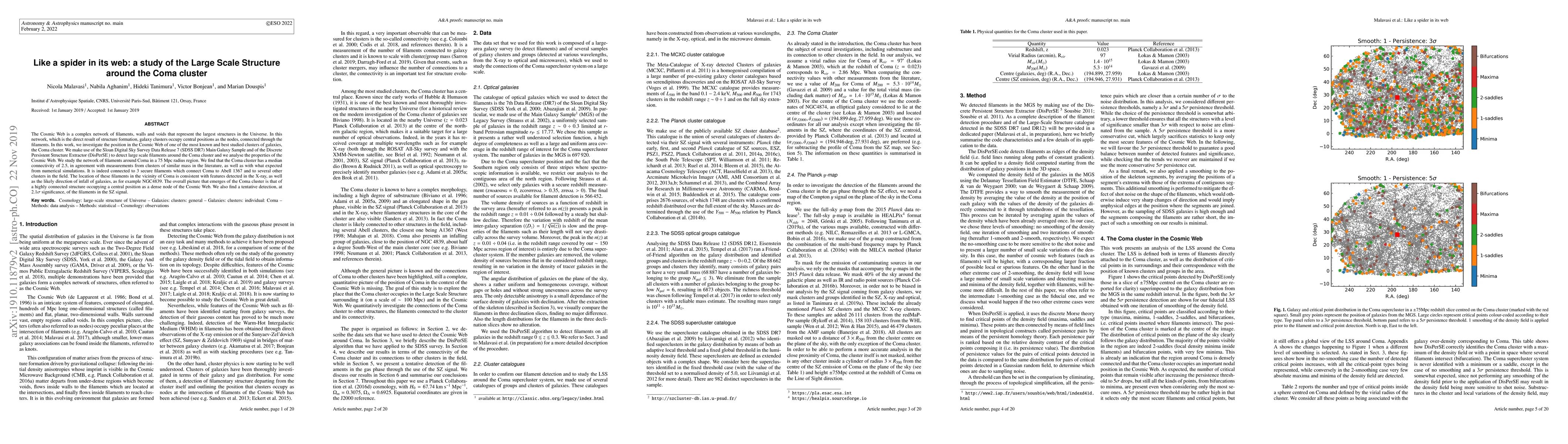 This study uses SDSS DR7 data and the DisPerSE algorithm to analyze the large-scale structure around the Coma cluster, revealing it is highly connected to three filaments linking it to other clusters, consistent with X-ray features and galaxy infall directions, and suggesting a central role in the Cosmic Web.