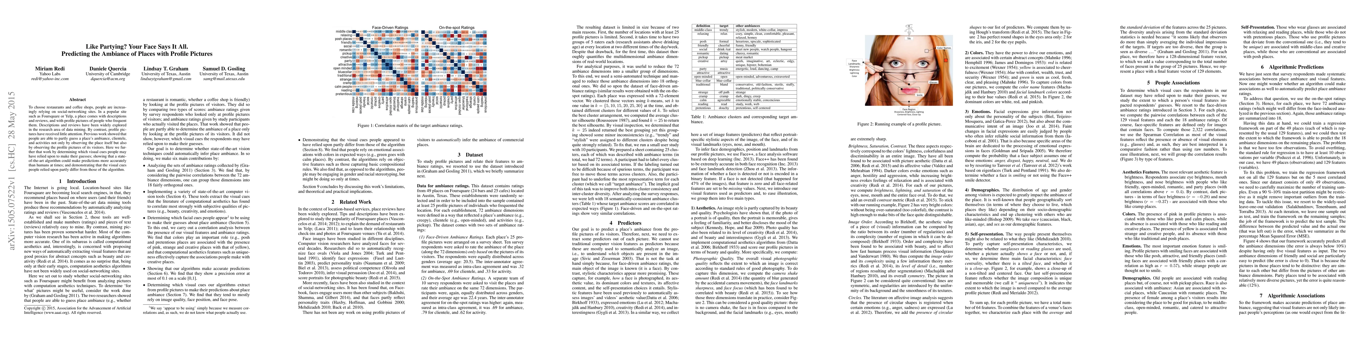 To choose restaurants and coffee shops, people are increasingly relying on social-networking sites. In a popular site such as Foursquare or Yelp, a place comes with descriptions and reviews, and with profile pictures of people who frequent them. Descriptions and reviews have been widely explored in the research area of data mining. By contrast, profile pictures have received little attention. Previous work showed that people are able to partly guess a place's ambiance, clientele, and activities not only by observing the place itself but also by observing the profile pictures of its visitors. Here we further that work by determining which visual cues people may have relied upon to make their guesses; showing that a state-of-the-art algorithm could make predictions more accurately than humans at times; and demonstrating that the visual cues people relied upon partly differ from those of the algorithm.