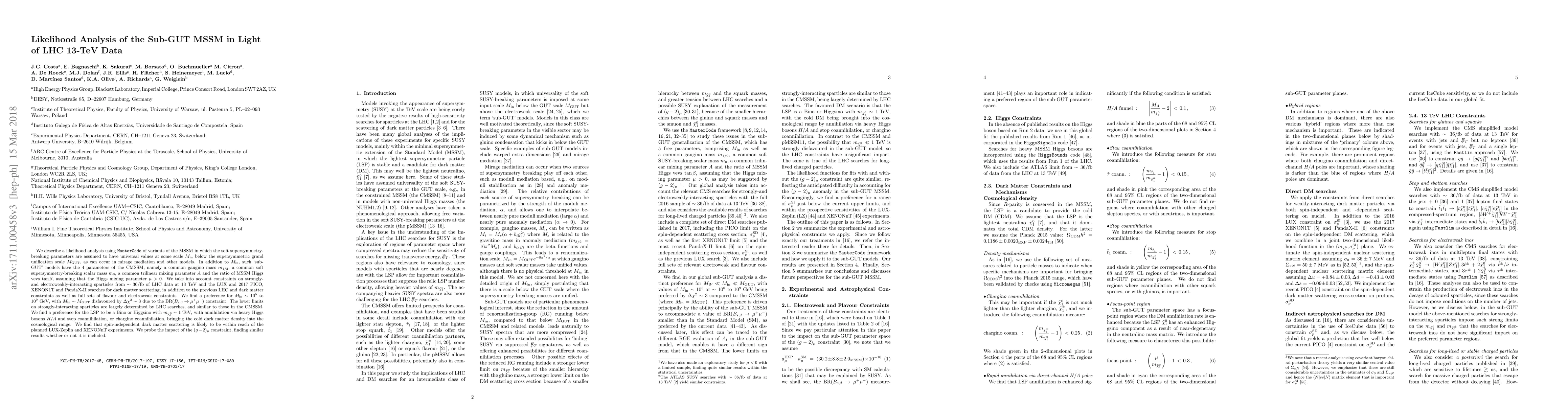 We describe a likelihood analysis using MasterCode of variants of the MSSM in which the soft supersymmetry-breaking parameters are assumed to have universal values at some scale $M_{in}$ below the supersymmetric grand unification scale $M_{GUT}$, as can occur in mirage mediation and other models. In addition to $M_{in}$, such `sub-GUT' models have the 4 parameters of the CMSSM, namely a common gaugino mass $m_{1/2}$, a common soft supersymmetry-breaking scalar mass $m_0$, a common trilinear mixing parameter $A$ and the ratio of MSSM Higgs vevs $\tan\beta$, assuming that the Higgs mixing parameter $\mu > 0$. We take into account constraints on strongly- and electroweakly-interacting sparticles from $\sim 36$/fb of LHC data at 13 TeV and the LUX and 2017 PICO, XENON1T and PandaX-II searches for dark matter scattering, in addition to the previous LHC and dark matter constraints as well as full sets of flavour and electroweak constraints. We find a preference for $M_{in} \sim 10^5$ to $10^9$ GeV, with $M_{in} \sim M_{GUT}$ disfavoured by $\Delta \chi^2 \sim 3$ due to the ${\rm BR}(B_{s, d} \to \mu^+\mu^-)$ constraint. The lower limits on strongly-interacting sparticles are largely determined by LHC searches, and similar to those in the CMSSM. We find a preference for the LSP to be a Bino or Higgsino with $\tilde{\chi^0_1} \sim 1$ TeV, with annihilation via heavy Higgs bosons $H/A$ and stop coannihilation, or chargino coannihilation, bringing the cold dark matter density into the cosmological range. We find that spin-independent dark matter scattering is likely to be within reach of the planned LUX-Zeplin and XENONnT experiments. We probe the impact of the $(g-2)_\mu$ constraint, finding similar results whether or not it is included.