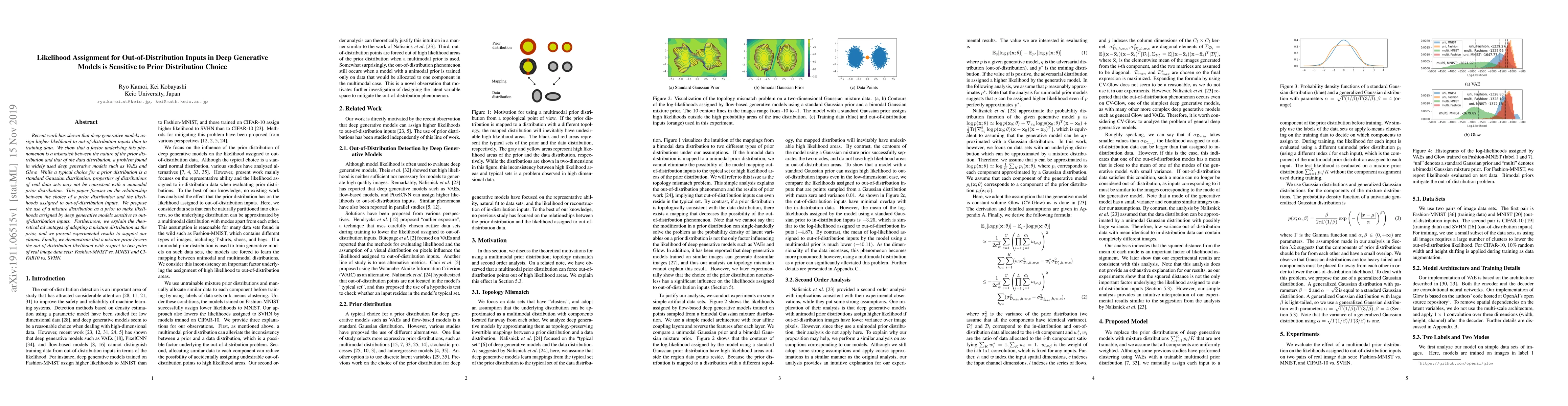 This paper investigates how the choice of prior distribution in deep generative models affects likelihood assignments to out-of-distribution inputs, proposing a mixture distribution as a more suitable alternative to standard Gaussian priors. Experimental results show that using a mixture prior significantly reduces the likelihood assigned to out-of-distribution data.