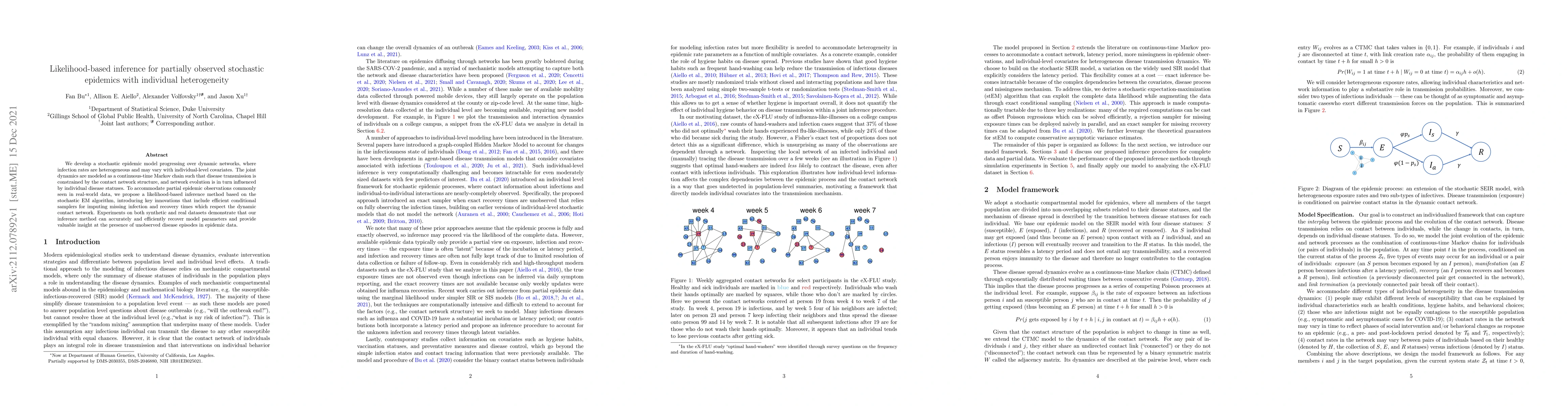 This paper proposes a stochastic epidemic model for dynamic networks with individual-level heterogeneity in infection rates, using a continuous-time Markov chain. It introduces a likelihood-based inference method based on the stochastic EM algorithm to handle partial observations, demonstrating accurate and efficient recovery of model parameters and insights into unobserved disease episodes.