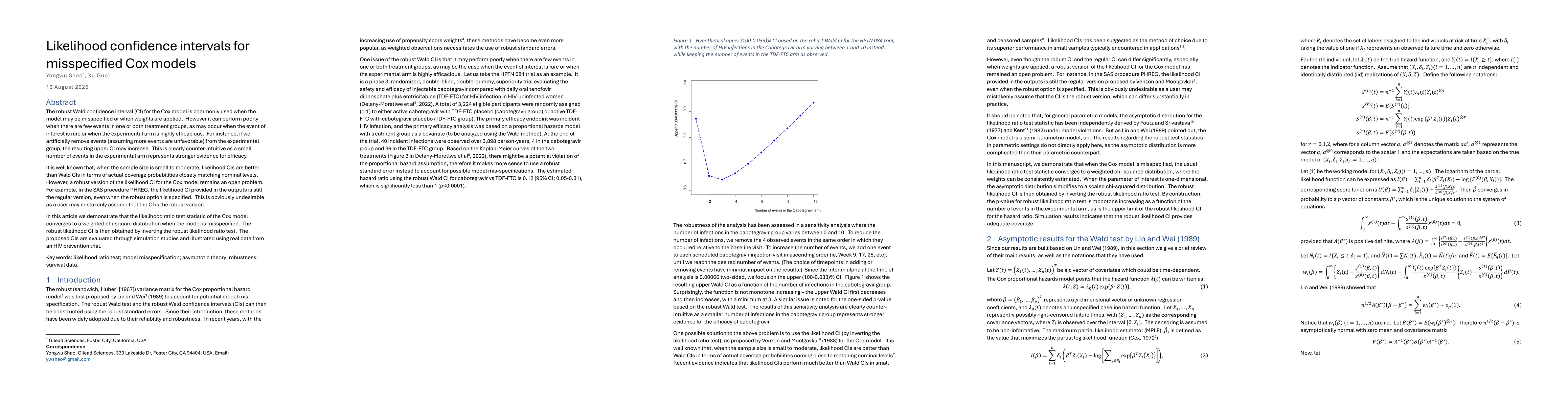 The robust Wald confidence interval (CI) for the Cox model is commonly used when the model may be misspecified or when weights are applied. However it can perform poorly when there are few events in one or both treatment groups, as may occur when the event of interest is rare or when the experimental arm is highly efficacious. For instance, if we artificially remove events (assuming more events are unfavorable) from the experimental group, the resulting upper CI may increase. This is clearly counter-intuitive as a small number of events in the experimental arm represents stronger evidence for efficacy. It is well known that, when the sample size is small to moderate, likelihood CIs are better than Wald CIs in terms of actual coverage probabilities closely matching nominal levels. However, a robust version of the likelihood CI for the Cox model remains an open problem. For example, in the SAS procedure PHREG, the likelihood CI provided in the outputs is still the regular version, even when the robust option is specified. This is obviously undesirable as a user may mistakenly assume that the CI is the robust version. In this article we demonstrate that the likelihood ratio test statistic of the Cox model converges to a weighted chi-square distribution when the model is misspecified. The robust likelihood CI is then obtained by inverting the robust likelihood ratio test. The proposed CIs are evaluated through simulation studies and illustrated using real data from an HIV prevention trial.