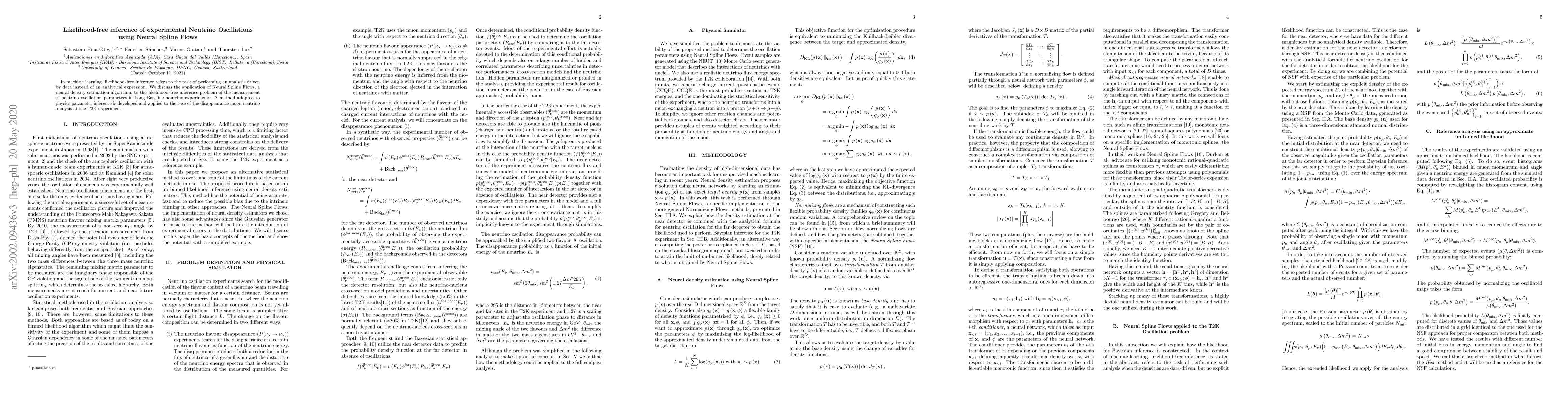 This paper explores the use of Neural Spline Flows for likelihood-free inference in neutrino oscillation parameter estimation, specifically applied to the disappearance muon neutrino analysis in the T2K experiment, demonstrating a data-driven approach to physics parameter inference.