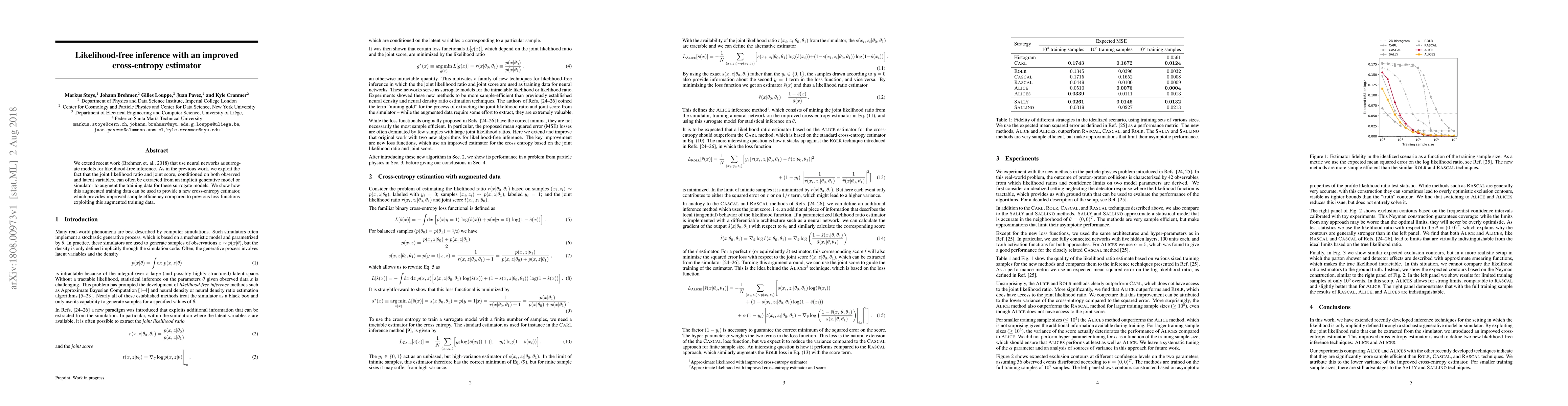 This paper builds upon previous research to enhance likelihood-free inference using neural networks. It introduces an improved cross-entropy estimator, which leverages augmented training data derived from implicit generative models or simulators, thereby offering better sample efficiency than prior loss functions.