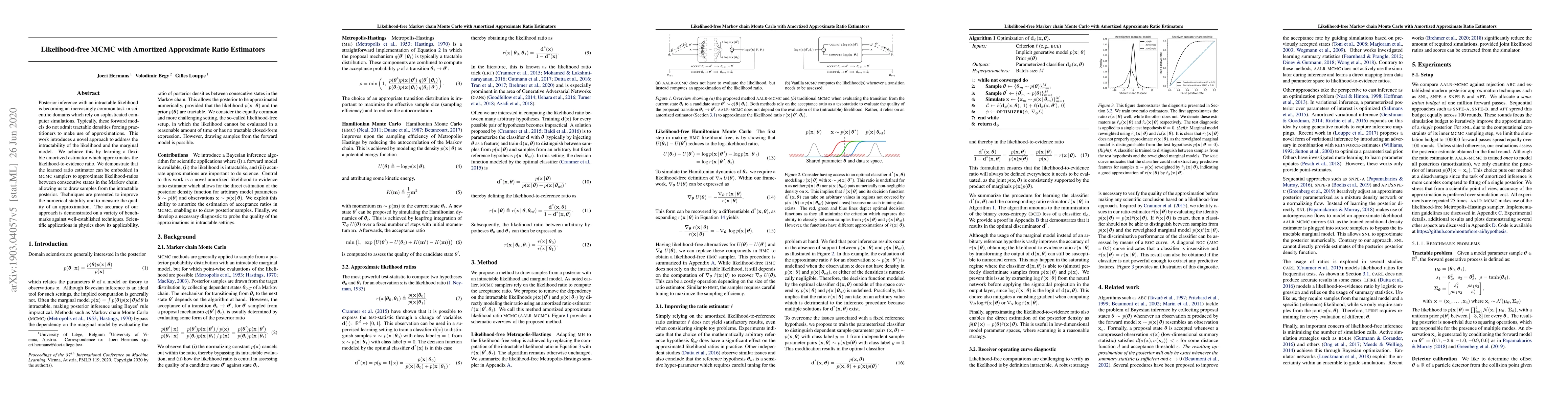 This paper proposes a novel method for likelihood-free MCMC using amortized estimators to approximate the likelihood-to-evidence ratio, enabling sampling from intractable posteriors. The approach demonstrates improved accuracy and stability over established techniques, validated through benchmarks and applications in physics.