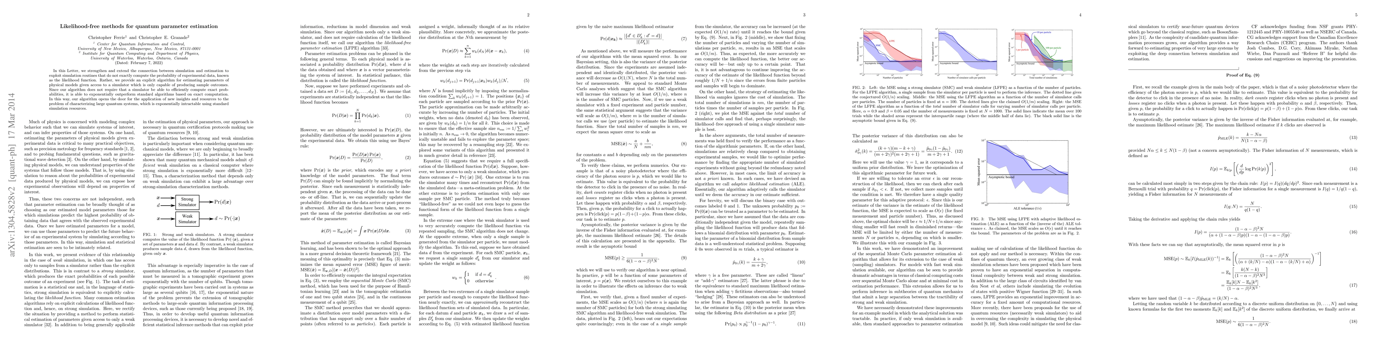 In this Letter, we strengthen and extend the connection between simulation and estimation to exploit simulation routines that do not exactly compute the probability of experimental data, known as the likelihood function. Rather, we provide an explicit algorithm for estimating parameters of physical models given access to a simulator which is only capable of producing sample outcomes. Since our algorithm does not require that a simulator be able to efficiently compute exact probabilities, it is able to exponentially outperform standard algorithms based on exact computation. In this way, our algorithm opens the door for the application of new insights and resources to the problem of characterizing large quantum systems, which is exponentially intractable using standard simulation resources.