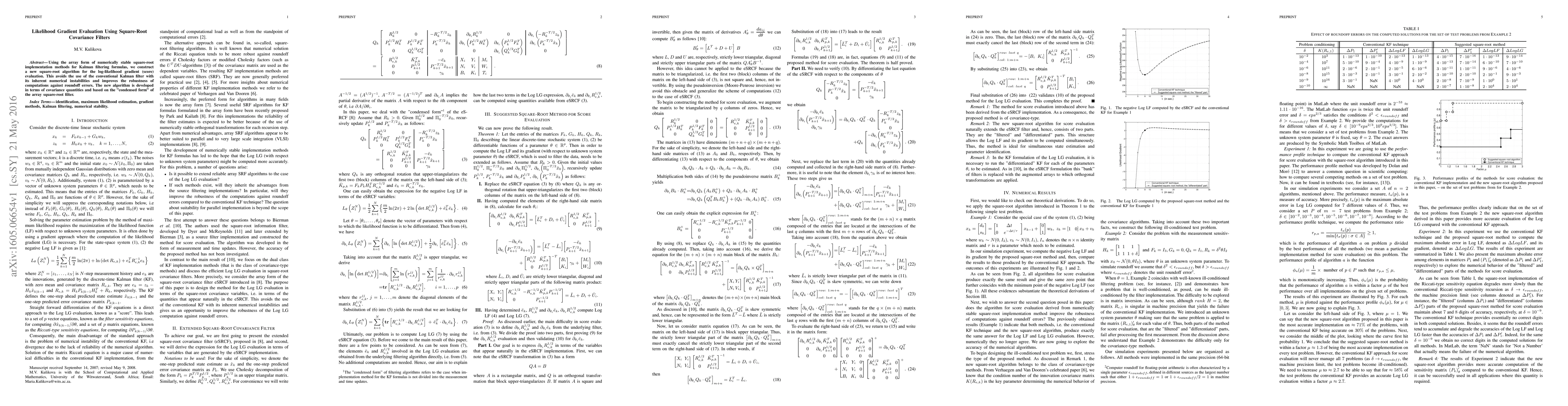 This paper introduces a new square-root algorithm for evaluating the log-likelihood gradient using numerically stable square-root covariance filters, which enhances robustness against roundoff errors compared to conventional Kalman filters. The method is developed using the "condensed form" of the array square-root filter.
