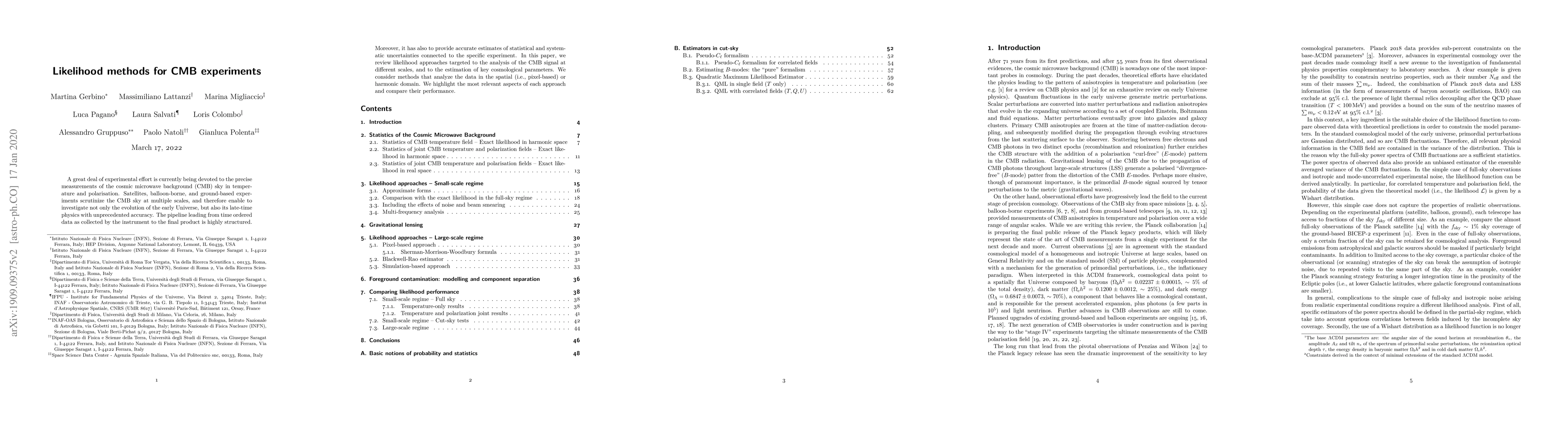 Researchers review likelihood methods for analyzing cosmic microwave background (CMB) data to estimate cosmological parameters with high accuracy. They compare different approaches in spatial and harmonic domains to identify the most effective methods.