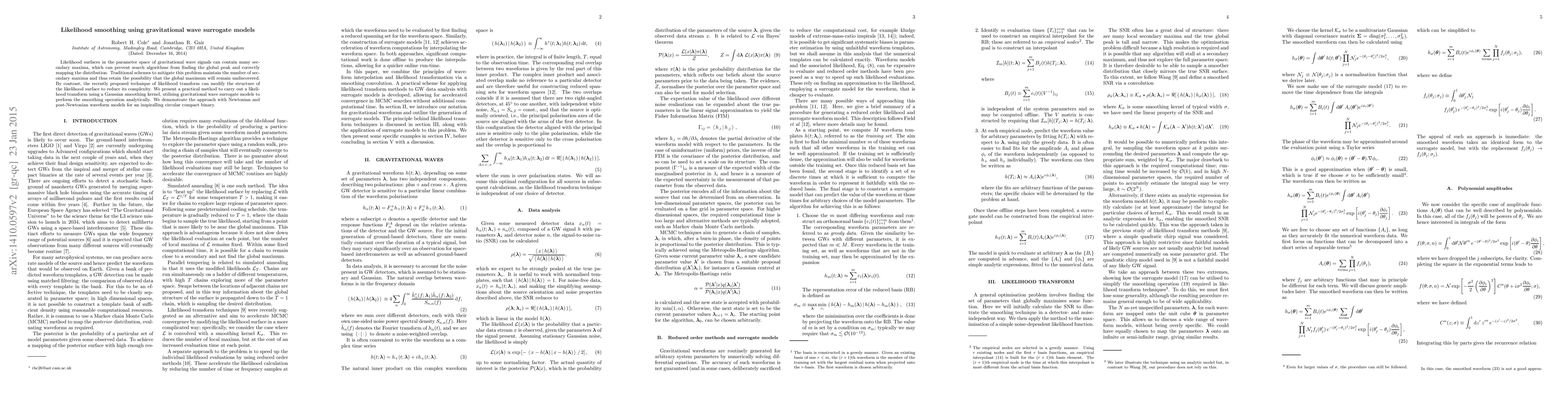 This paper proposes a method for smoothing likelihood surfaces in gravitational wave signals using Gaussian kernels and surrogate models to reduce complexity and improve the search for global maxima. The technique is demonstrated with Newtonian and post-Newtonian waveform models for inspiralling compact binaries.