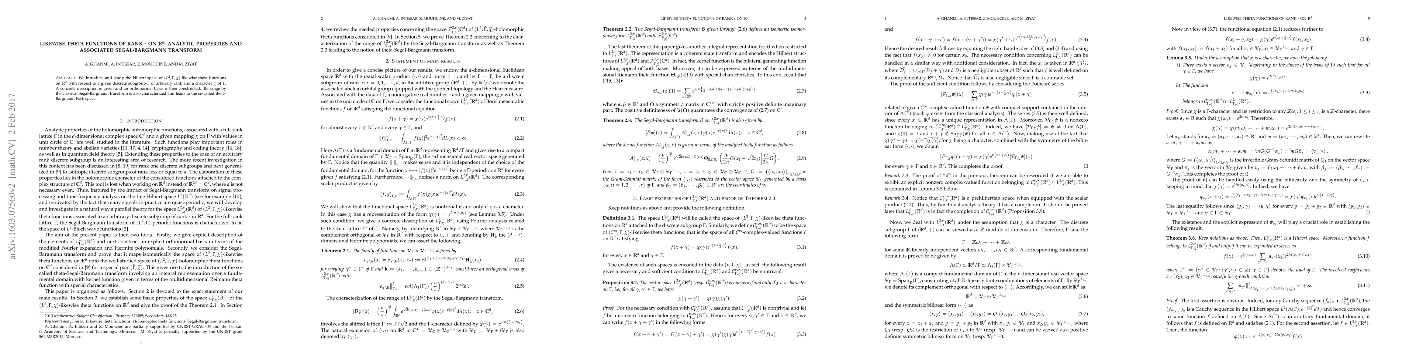 The paper introduces a novel Hilbert space of likewise theta functions on $\mathbb{R}^d$ and provides a detailed analysis of its structure, including an orthonormal basis and its relationship to the Segal-Bargmann transform.