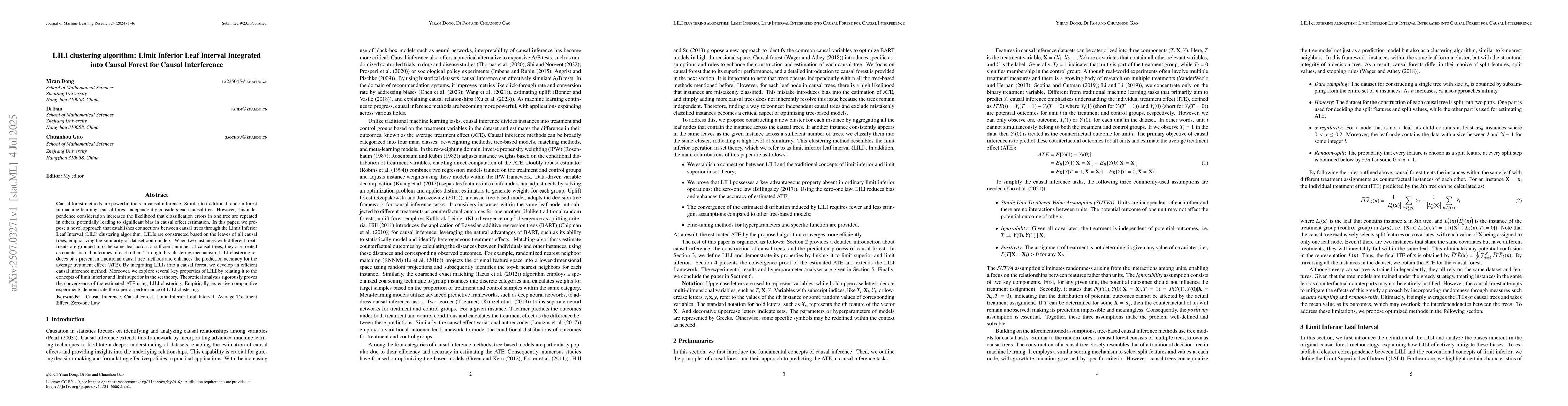 Causal forest methods are powerful tools in causal inference. Similar to traditional random forest in machine learning, causal forest independently considers each causal tree. However, this independence consideration increases the likelihood that classification errors in one tree are repeated in others, potentially leading to significant bias in causal e ect estimation. In this paper, we propose a novel approach that establishes connections between causal trees through the Limit Inferior Leaf Interval (LILI) clustering algorithm. LILIs are constructed based on the leaves of all causal trees, emphasizing the similarity of dataset confounders. When two instances with di erent treatments are grouped into the same leaf across a su cient number of causal trees, they are treated as counterfactual outcomes of each other. Through this clustering mechanism, LILI clustering reduces bias present in traditional causal tree methods and enhances the prediction accuracy for the average treatment e ect (ATE). By integrating LILIs into a causal forest, we develop an e cient causal inference method. Moreover, we explore several key properties of LILI by relating it to the concepts of limit inferior and limit superior in the set theory. Theoretical analysis rigorously proves the convergence of the estimated ATE using LILI clustering. Empirically, extensive comparative experiments demonstrate the superior performance of LILI clustering.