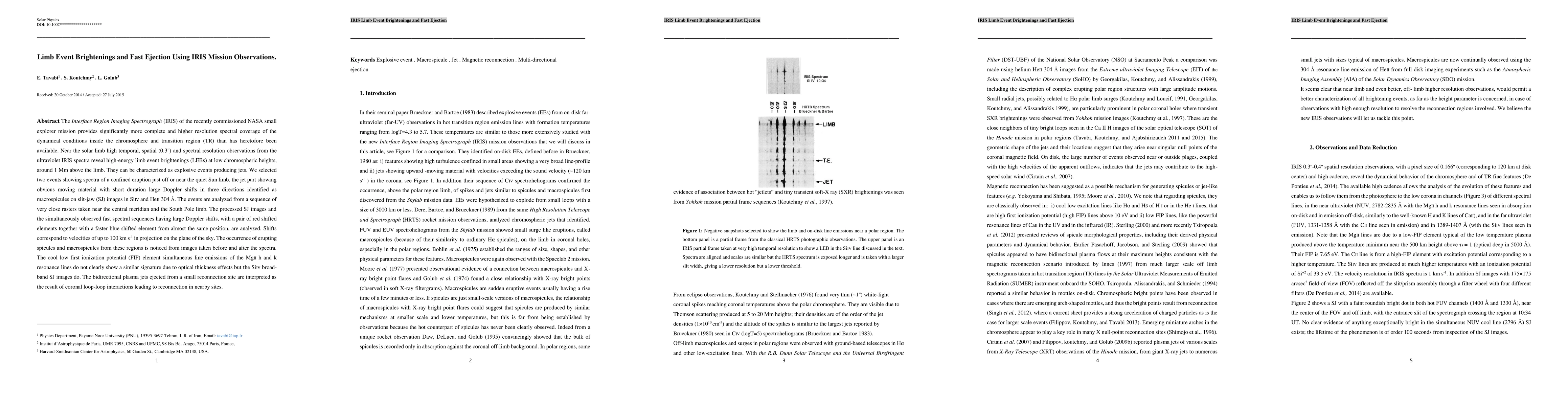 The IRIS mission reveals high-energy limb event brightenings (LEBs) in the chromosphere, characterized by explosive jets and macrospicules with velocities up to 100 km/s. These events are linked to coronal loop interactions and reconnection, observed via Si IV and He II 304 Å lines.