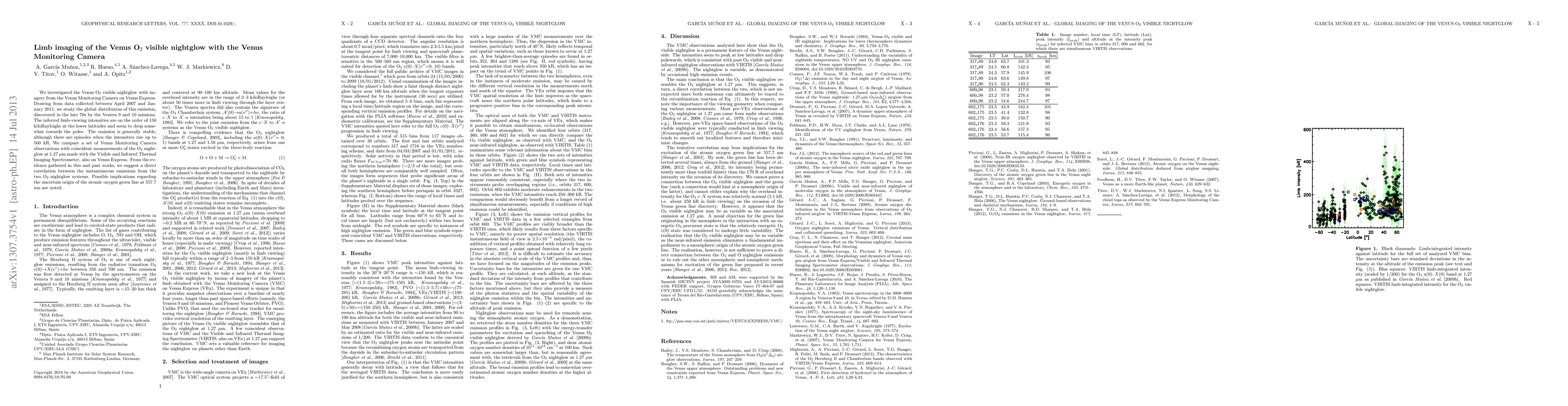 This study investigates the global distribution of Venus' O2 visible nightglow using data from the Venus Monitoring Camera on Venus Express, finding intensities around 150 kR at lower latitudes and occasional spikes up to 500 kR. It correlates these observations with measurements from the Visible and Infrared Thermal Imaging Spectrometer, suggesting a direct link between the two O2 nightglow systems.