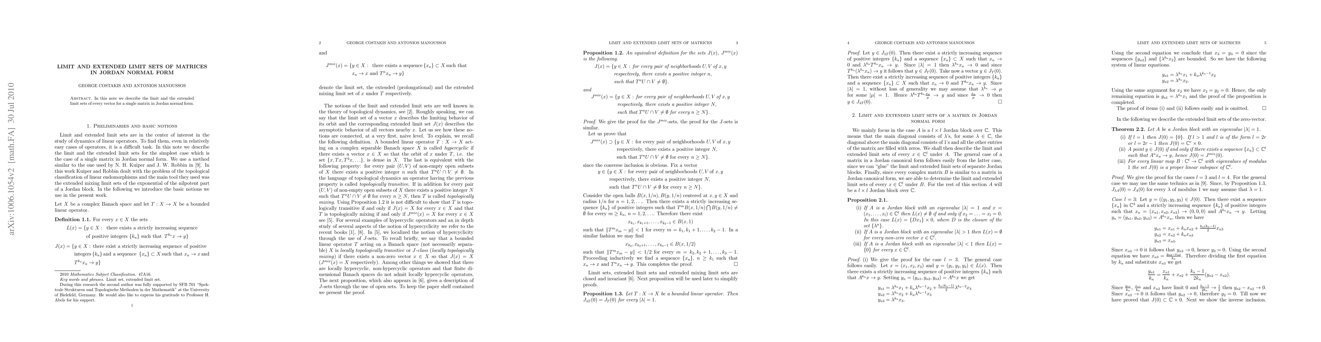 In this note we describe the limit and the extended limit sets of every vector for a single matrix in Jordan normal form.