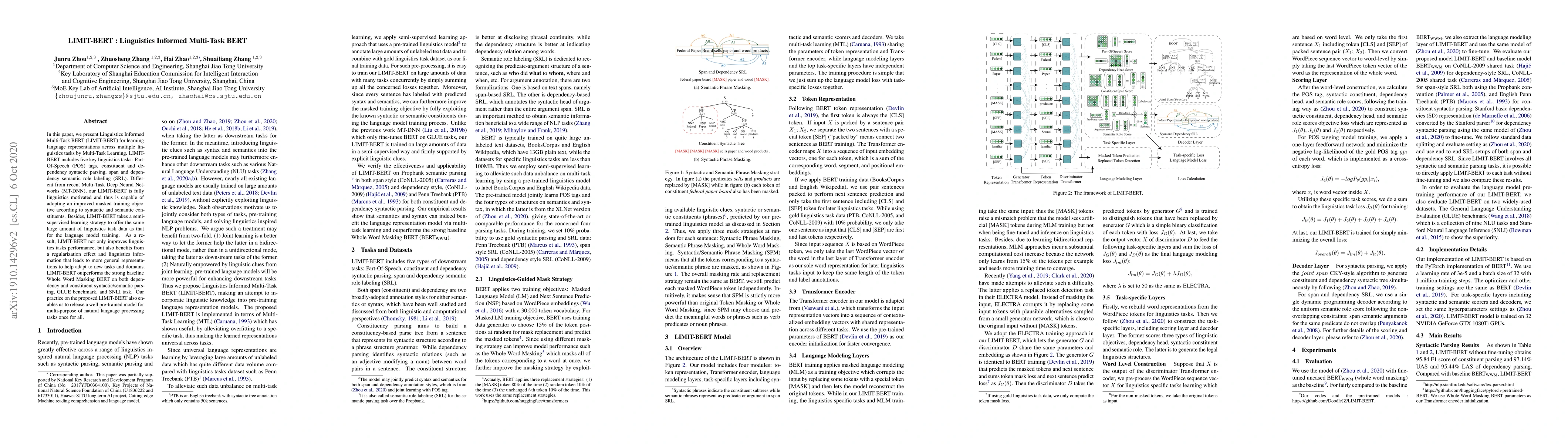 LIMIT-BERT is a linguistically informed Multi-Task BERT model that leverages five key linguistic tasks to improve language representation learning. It achieves state-of-the-art results on various benchmarks by incorporating a linguistic mask strategy and semi-supervised learning.
