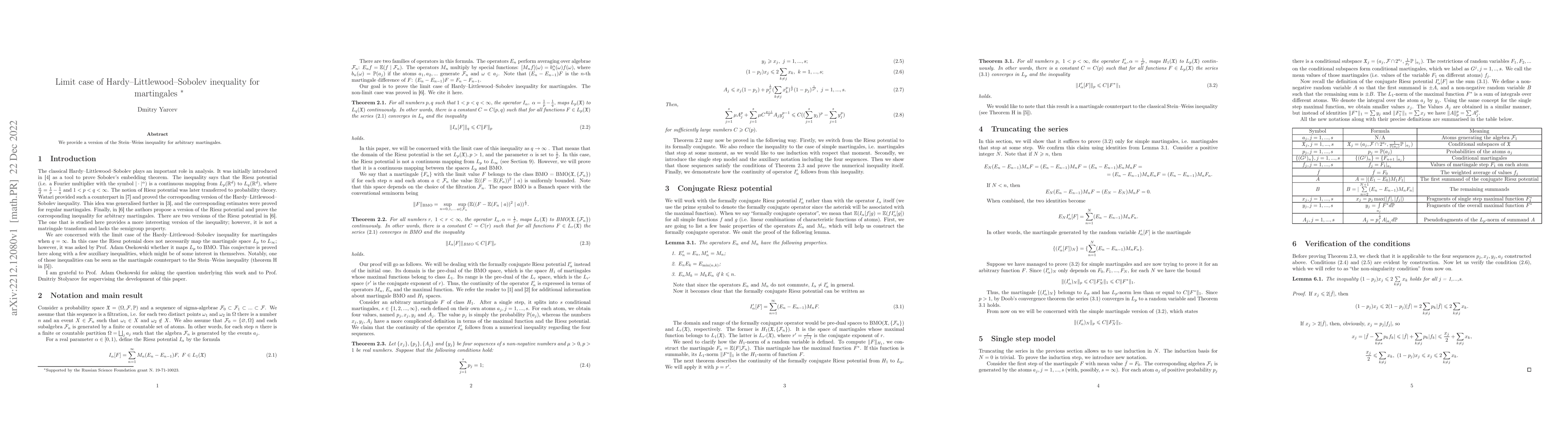 Summary: This paper establishes a version of the Stein-Weiss inequality for arbitrary martingales, extending the Hardy-Littlewood-Sobolev inequality to this context. The result provides a limit case analysis for martingales.