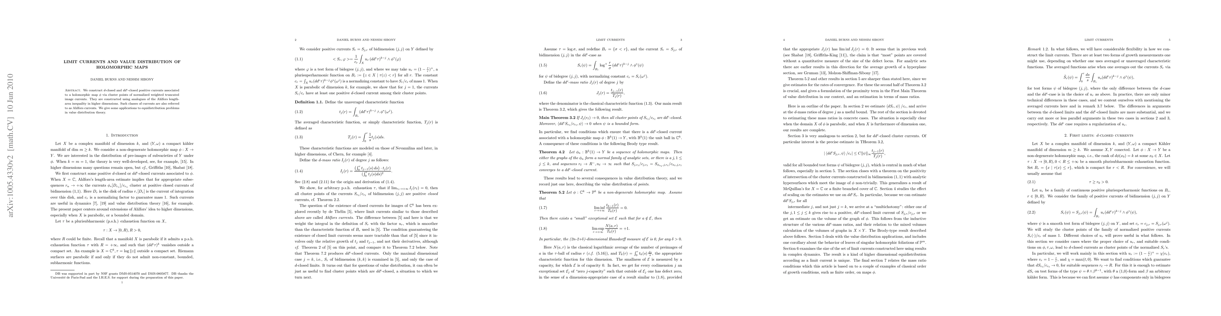 This paper constructs $d$-closed and $dd^c$-closed positive currents, termed Ahlfors currents, associated with holomorphic maps through cluster points of normalized weighted truncated image currents. It applies these currents to address equidistribution problems in value distribution theory.